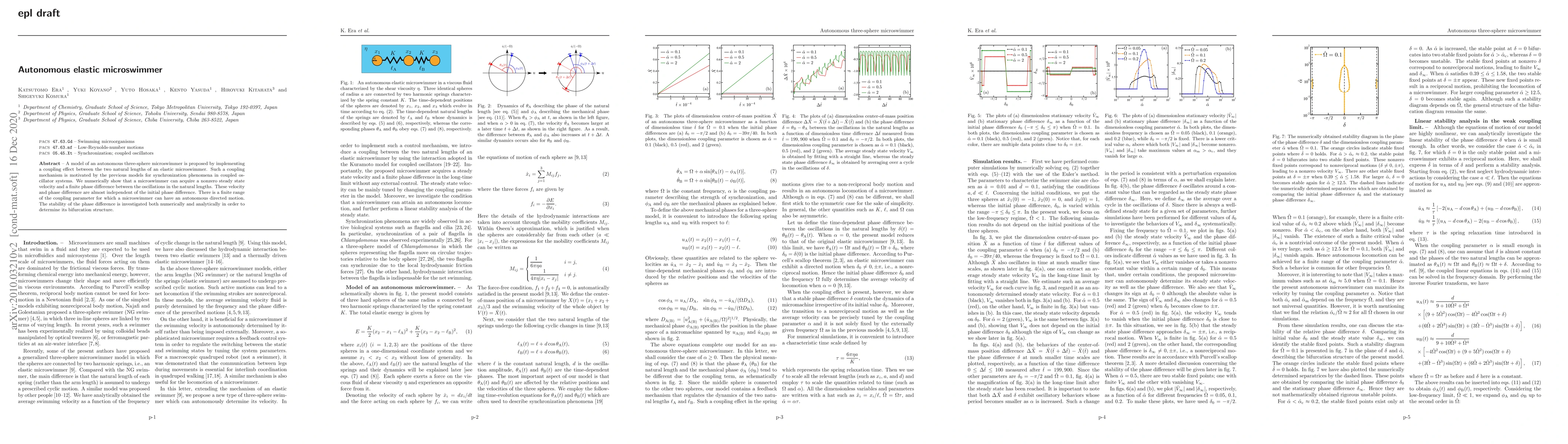 Researchers developed a model of an autonomous elastic microswimmer that can move in a directed motion with a stable phase difference, using a coupling effect between its natural lengths. The microswimmer's movement is found to be independent of the initial phase difference for certain range of the coupling parameter.
