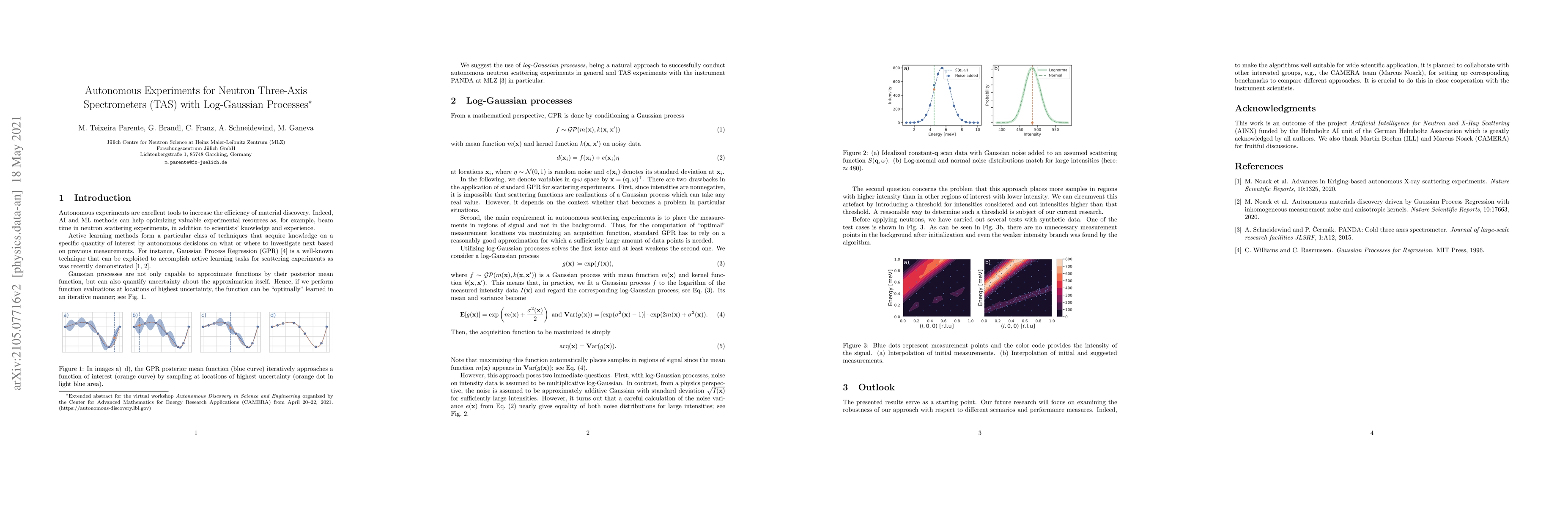 Autonomous experiments are excellent tools to increase the efficiency of material discovery. Indeed, AI and ML methods can help optimizing valuable experimental resources as, for example, beam time in neutron scattering experiments, in addition to scientists' knowledge and experience. Active learning methods form a particular class of techniques that acquire knowledge on a specific quantity of interest by autonomous decisions on what or where to investigate next based on previous measurements. For instance, Gaussian Process Regression (GPR) is a well-known technique that can be exploited to accomplish active learning tasks for scattering experiments as was recently demonstrated. Gaussian processes are not only capable to approximate functions by their posterior mean function, but can also quantify uncertainty about the approximation itself. Hence, if we perform function evaluations at locations of highest uncertainty, the function can be "optimally" learned in an iterative manner. We suggest the use of log-Gaussian processes, being a natural approach to successfully conduct autonomous neutron scattering experiments in general and TAS experiments with the instrument PANDA at MLZ in particular.