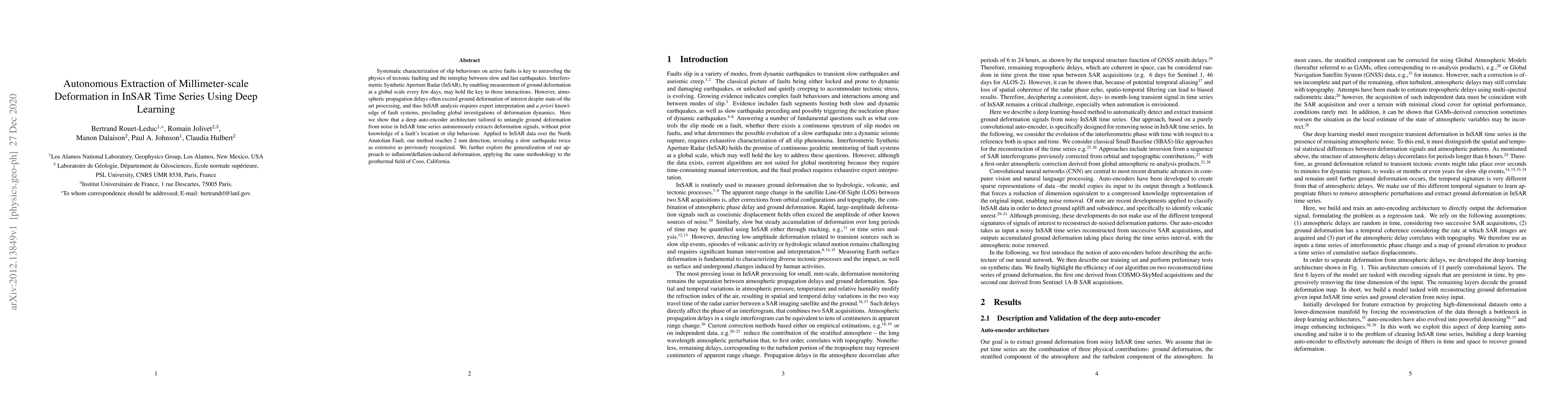 This paper presents a deep learning method using a tailored auto-encoder to autonomously extract millimeter-scale deformation signals from InSAR time series data, eliminating the need for prior knowledge of fault locations. The method successfully detects a previously unrecognized slow earthquake on the North Anatolian Fault and demonstrates its applicability to geothermal deformation in Coso, California.