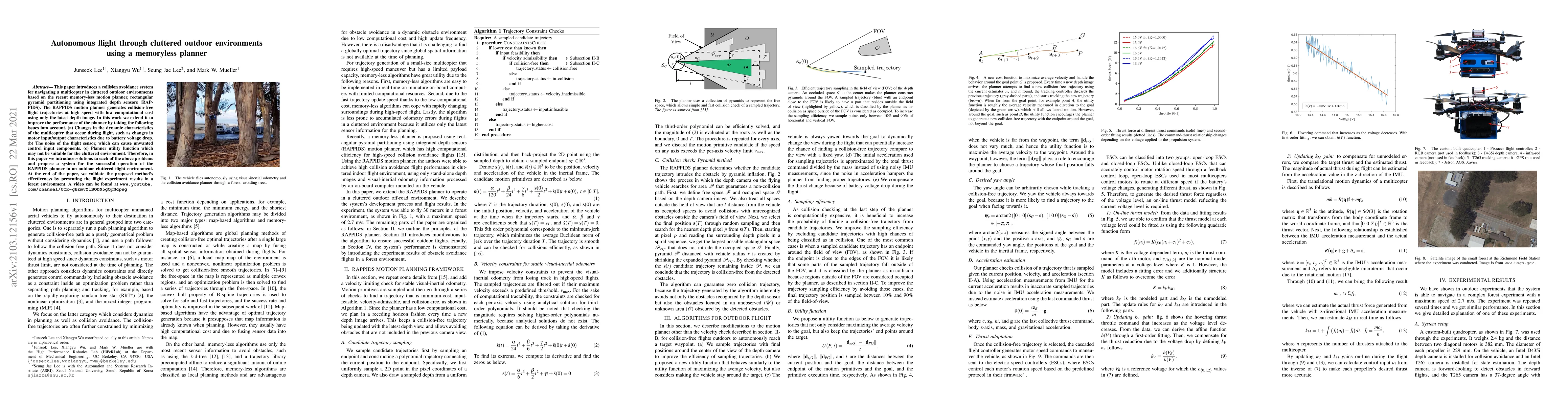 This paper presents a collision avoidance system for multicopter navigation in cluttered outdoor environments using the RAPPIDS memoryless motion planner, addressing dynamic changes, sensor noise, and planner utility. Experiments in a forest validate the system's effectiveness.