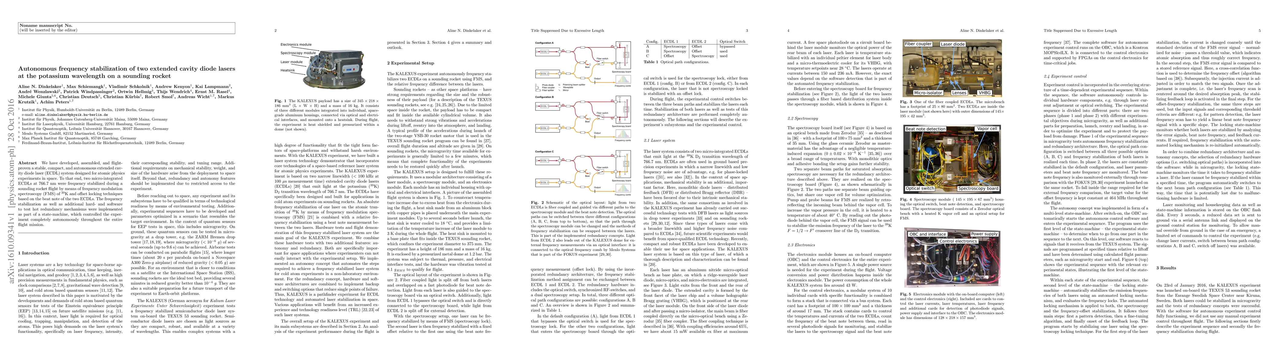 This study presents a compact, autonomous extended cavity diode laser system for space-based atomic physics experiments, successfully stabilizing the frequency of two ECDLs at the potassium wavelength using frequency modulation spectroscopy and offset locking during a sounding rocket flight. The entire stabilization process was autonomously controlled by a state-machine.