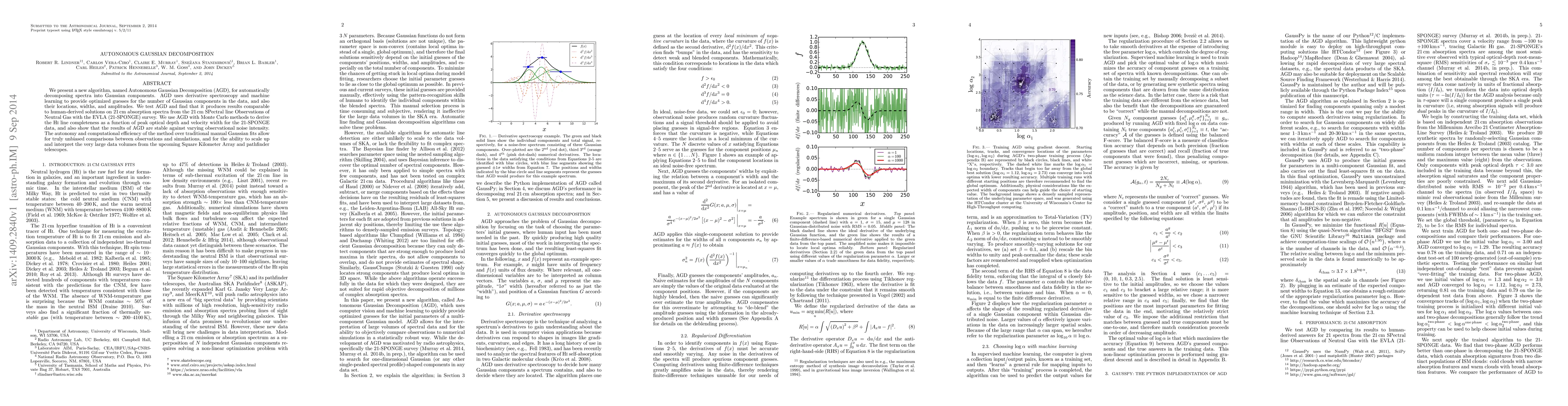 We present a new algorithm, named Autonomous Gaussian Decomposition (AGD), for automatically decomposing spectra into Gaussian components. AGD uses derivative spectroscopy and machine learning to provide optimized guesses for the number of Gaussian components in the data, and also their locations, widths, and amplitudes. We test AGD and find that it produces results comparable to human-derived solutions on 21cm absorption spectra from the 21cm SPectral line Observations of Neutral Gas with the EVLA (21-SPONGE) survey. We use AGD with Monte Carlo methods to derive the HI line completeness as a function of peak optical depth and velocity width for the 21-SPONGE data, and also show that the results of AGD are stable against varying observational noise intensity. The autonomy and computational efficiency of the method over traditional manual Gaussian fits allow for truly unbiased comparisons between observations and simulations, and for the ability to scale up and interpret the very large data volumes from the upcoming Square Kilometer Array and pathfinder telescopes.