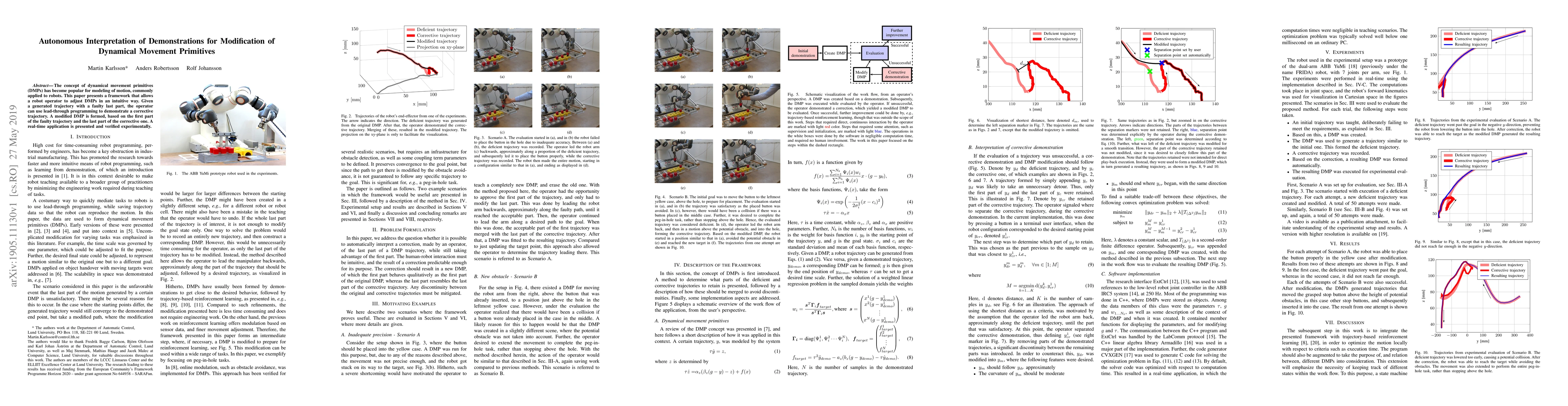 This paper introduces a framework enabling intuitive modification of dynamical movement primitives (DMPs) through operator demonstrations. It allows robots to adjust DMPs by learning from operator-corrected trajectories, validated through a real-time experimental application.