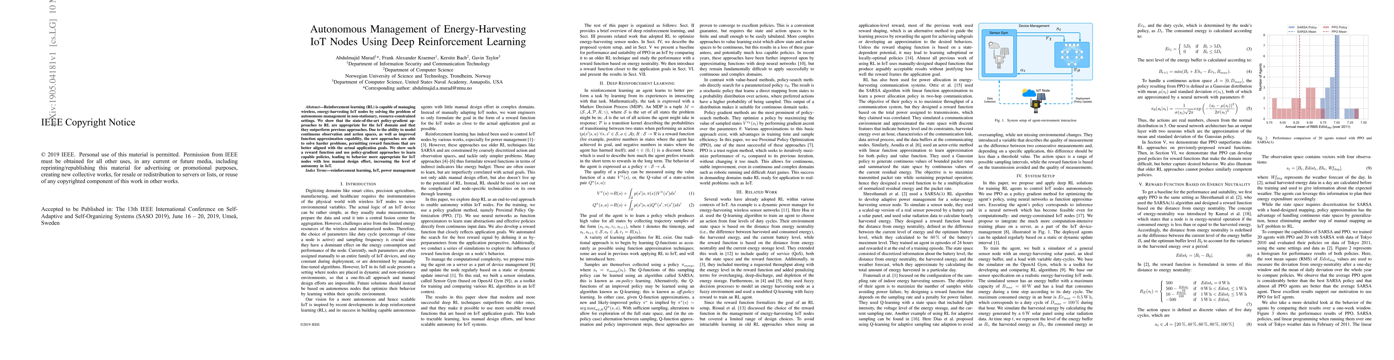 This research demonstrates the potential of RL to manage constrained IoT nodes, enabling autonomous operation with minimal human intervention.