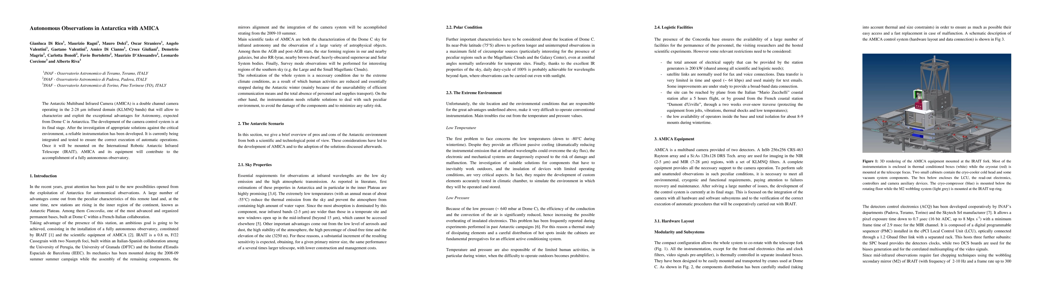 The Antarctic Multiband Infrared Camera (AMICA) is nearing completion and will enable autonomous astronomical observations from Dome C, Antarctica. The camera control system is being integrated and tested for automatic operations on the International Robotic Antarctic Infrared Telescope (IRAIT).