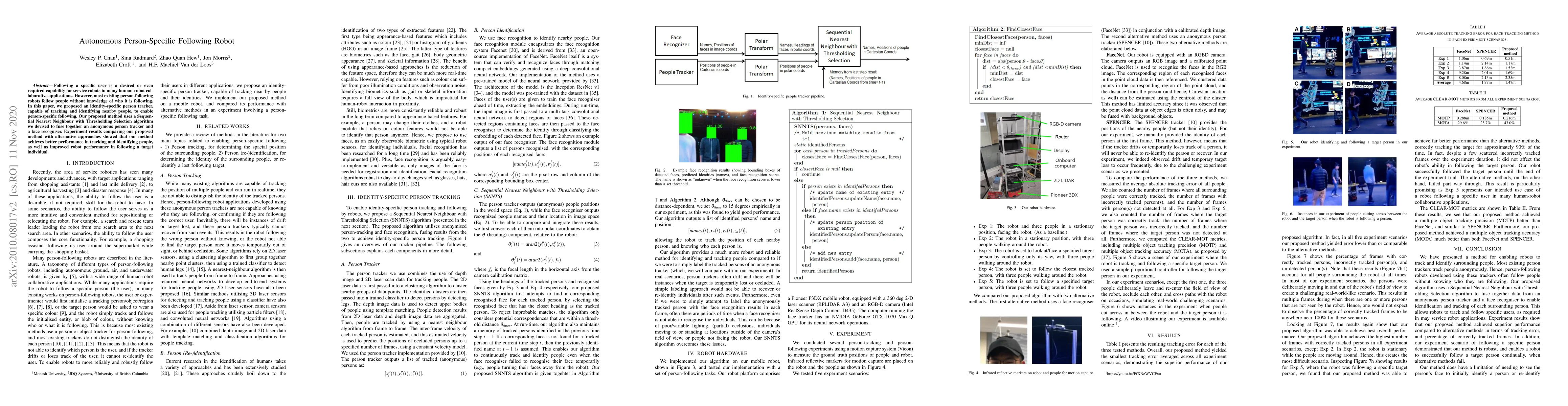 A new robot system can track and identify specific individuals it's following, improving its performance in human-robot collaboration applications. The proposed method combines a person tracker with face recognition for better results.