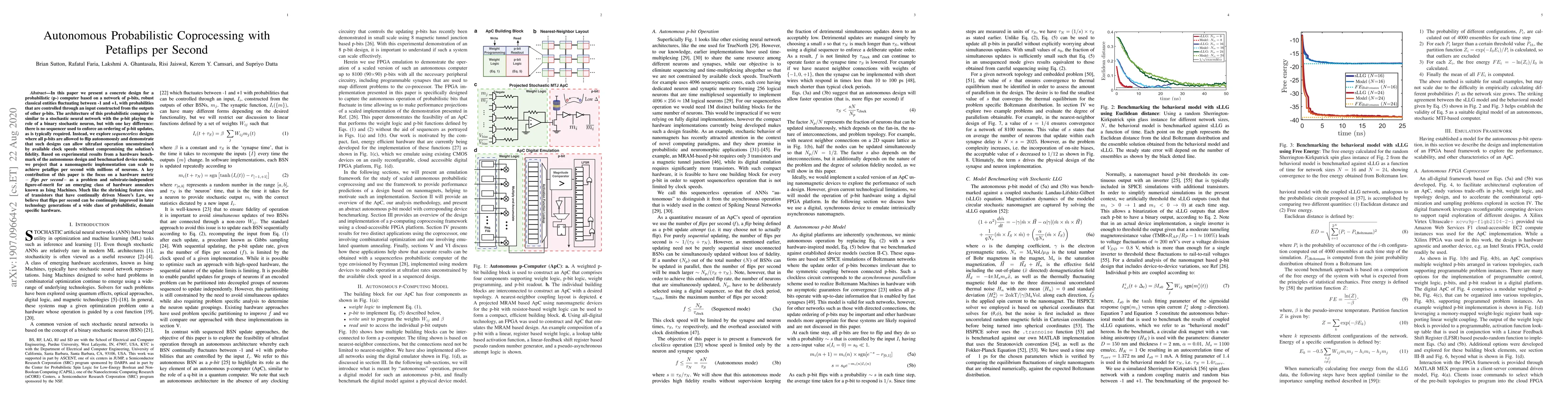 This paper introduces a design for a sequencerless probabilistic computer based on autonomous p-bits, which can operate at petaflips per second without compromising solution fidelity. The proposed architecture, akin to stochastic neural networks, emphasizes "flips per second" as a key metric for evaluating the performance of Ising Machines, suggesting continuous improvement in future technology.