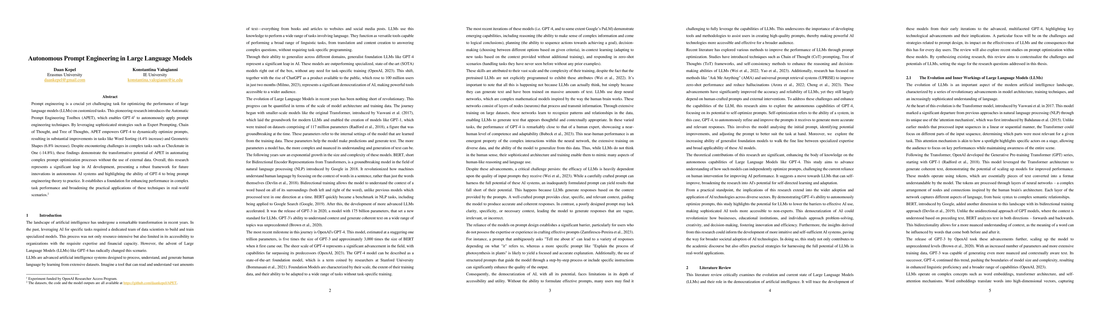 This paper introduces the Automatic Prompt Engineering Toolbox (APET) enabling GPT-4 to autonomously optimize prompts through advanced techniques, resulting in significant improvements in customized tasks like Word Sorting and Geometric Shapes. Despite challenges in complex tasks, the research showcases APET's transformative potential for future autonomous AI systems.