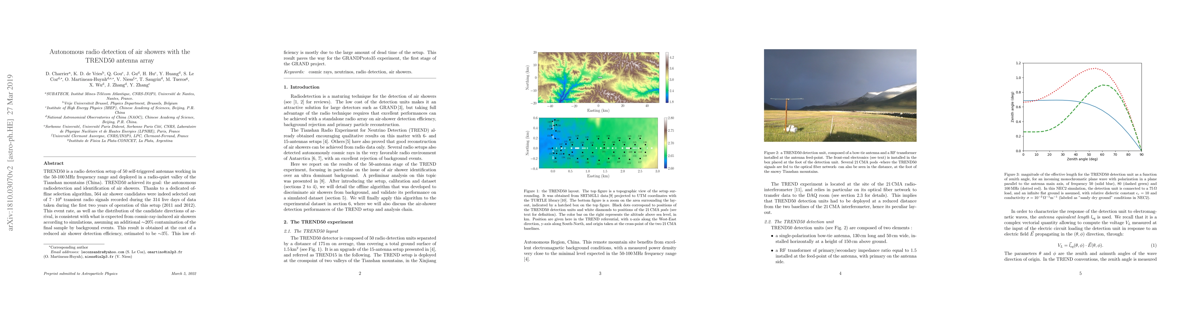 TREND50 is a radio detection setup of 50 self-triggered antennas working in the 50-100MHz frequency range and deployed in a radio-quiet valley of the Tianshan mountains (China). TREND50 achieved its goal: the autonomous radiodetection and identification of air showers. Thanks to a dedicated offine selection algorithm, 564 air shower candidates were indeed selected out of $7\cdot10^8$ transient radio signals recorded during the 314 live days of data taken during the first two years of operation of this setup (2011 and 2012). This event rate, as well as the distribution of the candidate directions of arrival, is consistent with what is expected from cosmic-ray-induced air showers according to simulations, assuming an additional $\sim$20% contamination of the final sample by background events. This result is obtained at the cost of a reduced air shower detection efficiency, estimated to be $\sim$3%. This low efficiency is mostly due to the large amount of dead time of the setup. This result paves the way for the GRANDProto35 experiment, the first stage of the GRAND project.