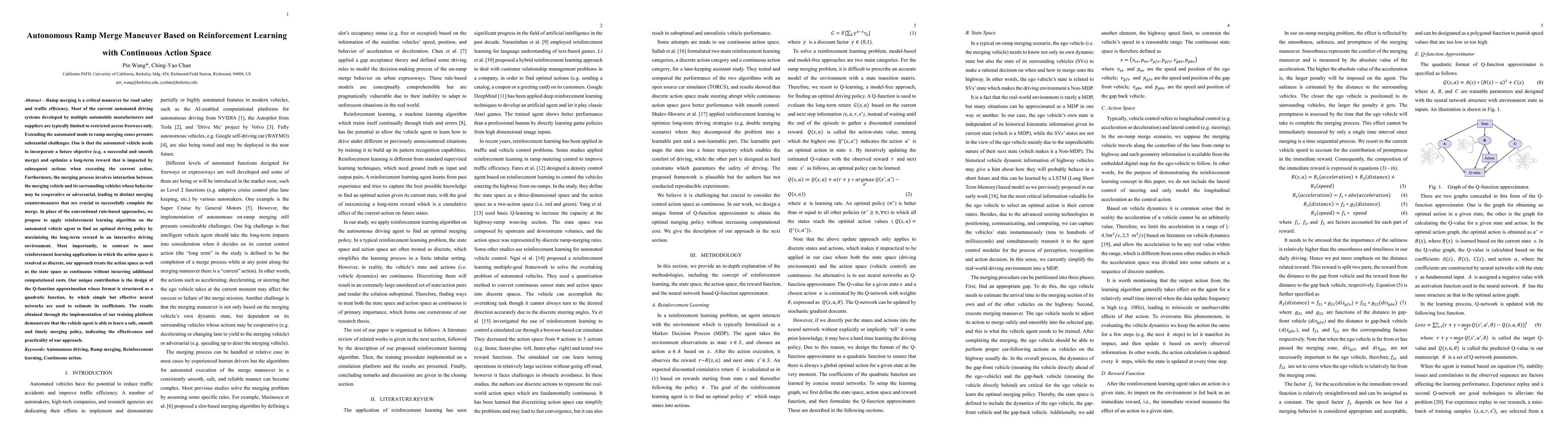 Researchers propose a new method for autonomous vehicles to merge onto a highway using reinforcement learning with continuous action space, achieving safe, smooth, and timely merges.