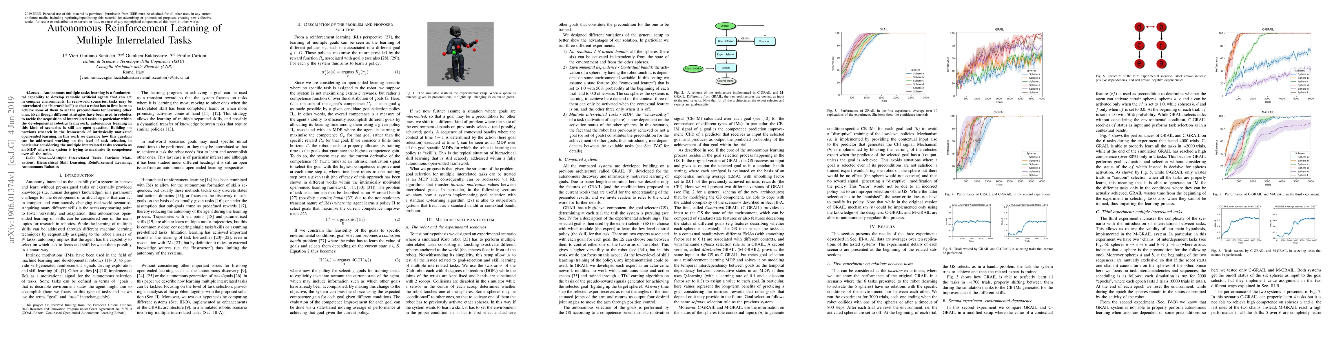 This paper explores autonomous reinforcement learning for multiple interrelated tasks, framing the problem as an MDP where the goal is to maximize competence across all tasks. It proposes a novel approach within the intrinsically motivated open-ended learning framework to address the challenge of learning hierarchical tasks autonomously.