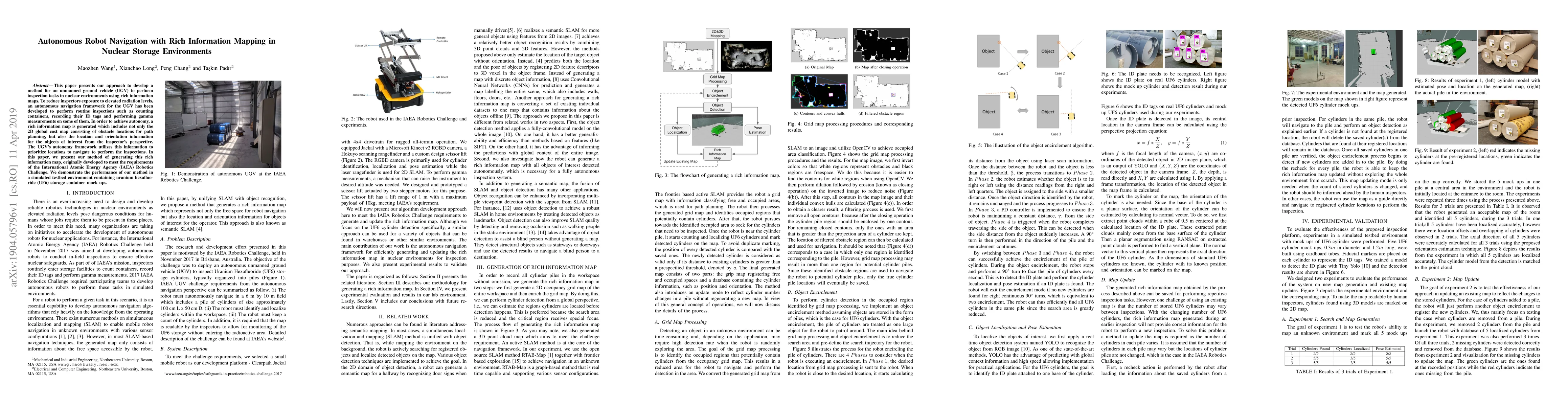 This paper presents our approach to develop a method for an unmanned ground vehicle (UGV) to perform inspection tasks in nuclear environments using rich information maps. To reduce inspectors' exposure to elevated radiation levels, an autonomous navigation framework for the UGV has been developed to perform routine inspections such as counting containers, recording their ID tags and performing gamma measurements on some of them. In order to achieve autonomy, a rich information map is generated which includes not only the 2D global cost map consisting of obstacle locations for path planning, but also the location and orientation information for the objects of interest from the inspector's perspective. The UGV's autonomy framework utilizes this information to prioritize locations to navigate to perform the inspections. In this paper, we present our method of generating this rich information map, originally developed to meet the requirements of the International Atomic Energy Agency (IAEA) Robotics Challenge. We demonstrate the performance of our method in a simulated testbed environment containing uranium hexafluoride (UF6) storage container mock ups.