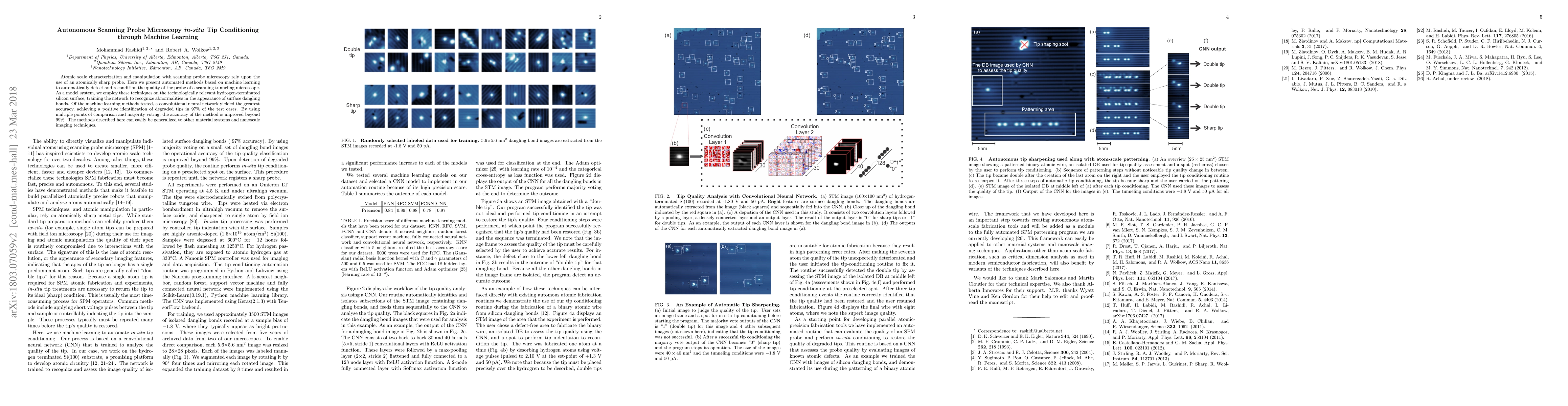 This paper presents machine learning techniques, specifically convolutional neural networks, to autonomously detect and recondition degraded tips in scanning tunneling microscopes, achieving 97% accuracy and over 99% with improved methods. The approach is demonstrated on hydrogen-terminated silicon surfaces, with potential for broader application across material systems and nanoscale imaging.
