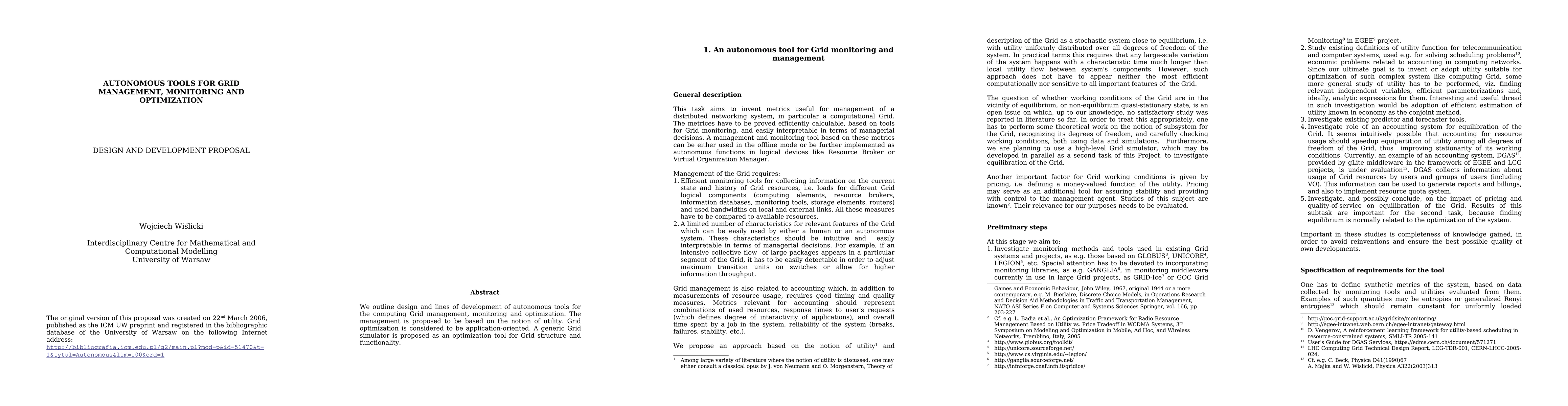 We outline design and lines of development of autonomous tools for the computing Grid management, monitoring and optimization. The management is proposed to be based on the notion of utility. Grid optimization is considered to be application-oriented. A generic Grid simulator is proposed as an optimization tool for Grid structure and functionality.