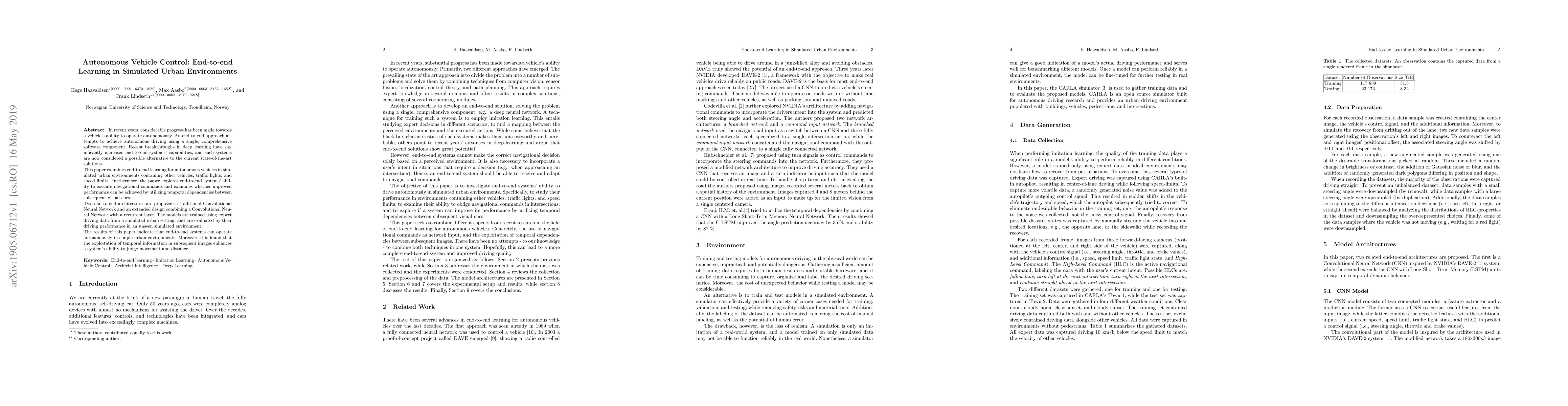 This paper investigates end-to-end learning for autonomous vehicles in simulated urban settings, proposing two architectures: a traditional Convolutional Neural Network and an extended version with a recurrent layer. Results show that end-to-end systems can autonomously navigate urban environments, with temporal dependencies in visual cues improving performance.