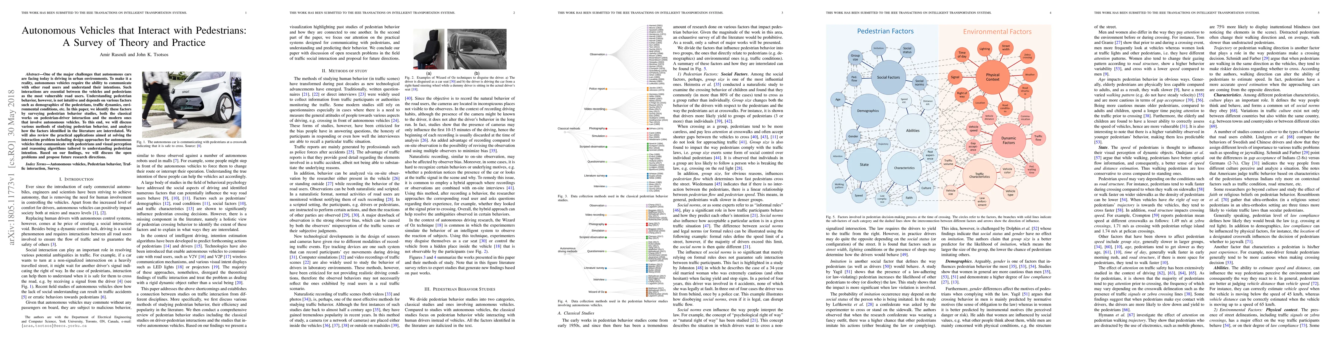 This paper surveys theories and practices regarding autonomous vehicles' interactions with pedestrians in urban environments, focusing on understanding pedestrian behavior influenced by various factors. It reviews methods for studying pedestrian behavior and discusses practical applications and future research directions to improve autonomous vehicle-pedestrian communication.