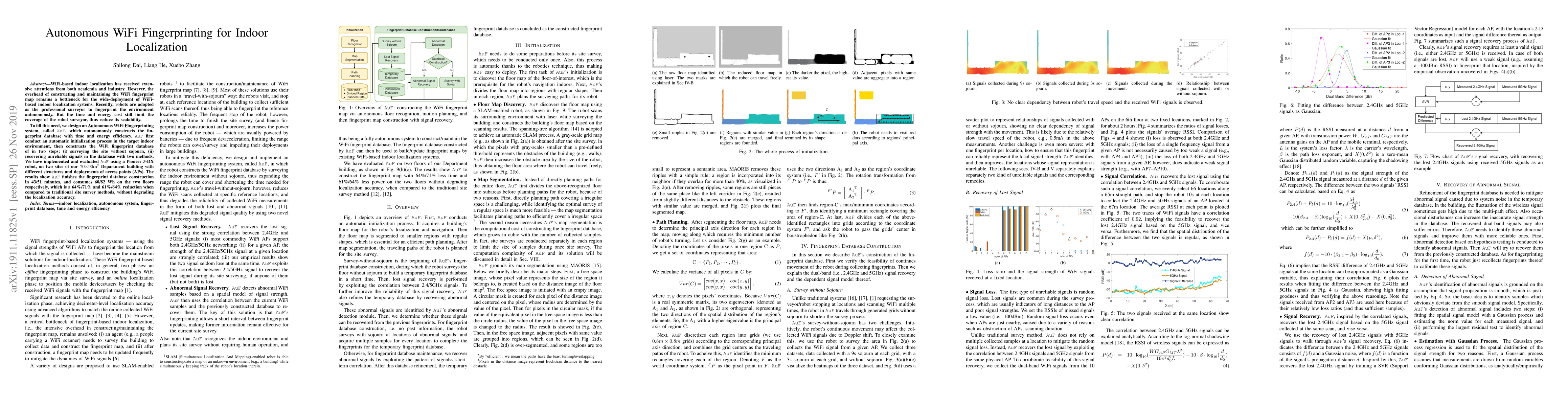 The paper proposes an Autonomous WiFi Fingerprinting system (AuF) to efficiently construct indoor localization databases with reduced time and energy costs compared to traditional methods. AuF autonomously builds the fingerprint database in two steps, achieving significant reductions in time and energy consumption while maintaining localization accuracy.