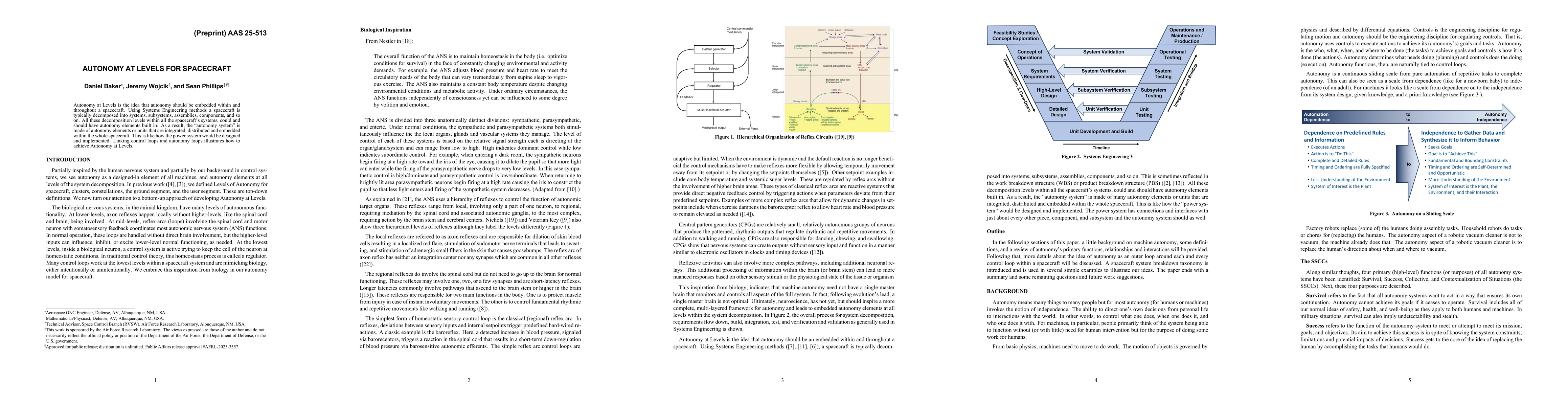 Autonomy at Levels is the idea that autonomy should be embedded within and throughout a spacecraft. Using Systems Engineering methods a spacecraft is typically decomposed into systems, subsystems, assemblies, components, and so on. All these decomposition levels within all the spacecraft's systems, could and should have autonomy elements built in. As a result, the "autonomy system" is made of autonomy elements or units that are integrated, distributed and embedded within the whole spacecraft. This is like how the power system would be designed and implemented. Linking control loops and autonomy loops illustrates how to achieve Autonomy at Levels.