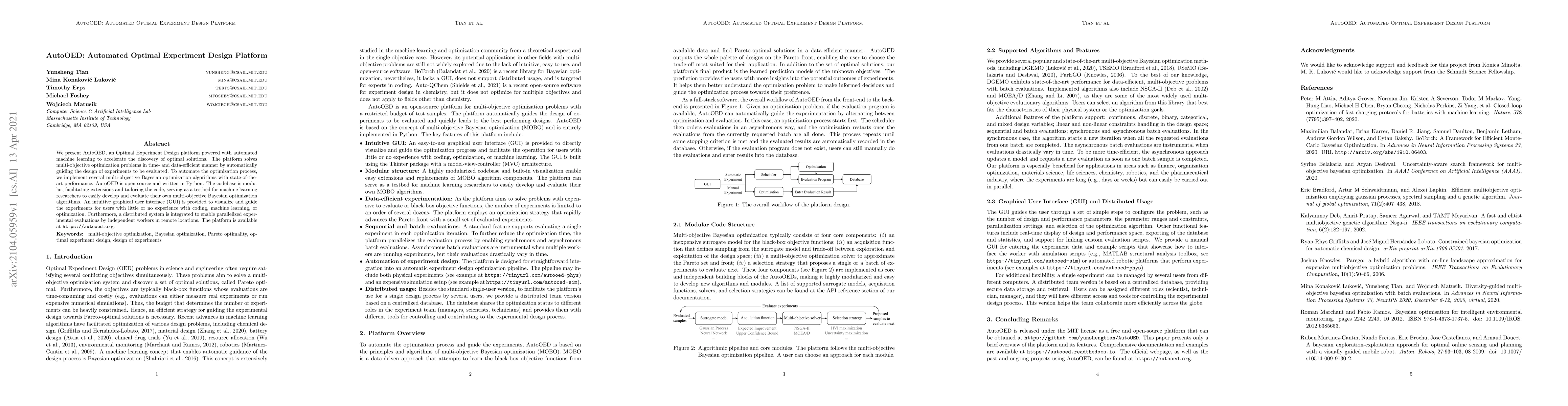 AutoOED is an open-source platform that automates optimal experiment design using machine learning, accelerating discovery of optimal solutions in time- and data-efficient ways.