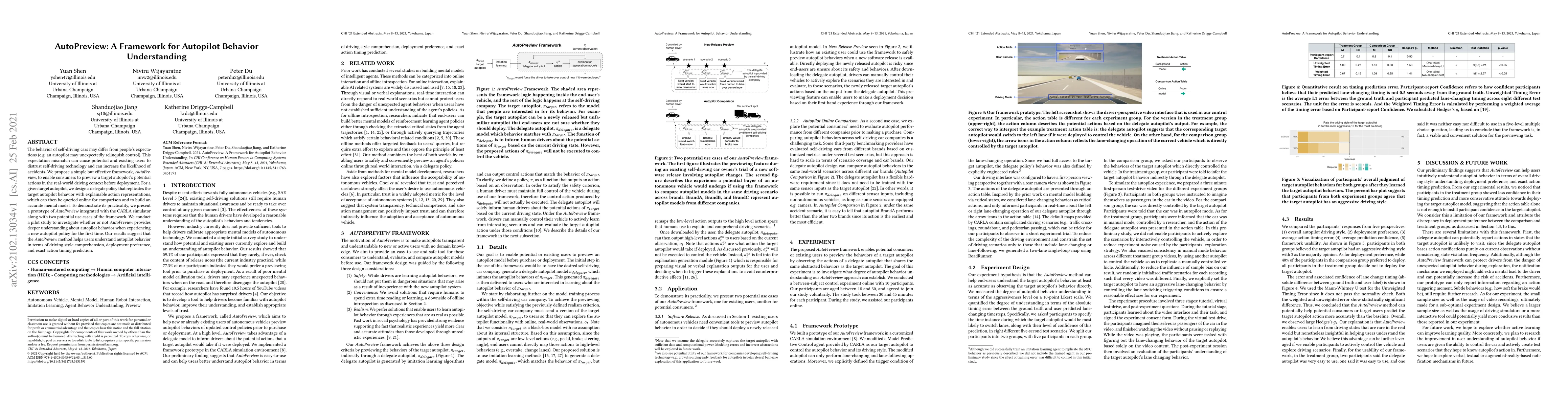 The research introduces AutoPreview, a framework that allows users to preview and understand autopilot behaviors before deployment, using a delegate policy that mimics target autopilot actions. A prototype integrated with CARLA simulator shows it aids in driving style comprehension, deployment preference, and action timing prediction.