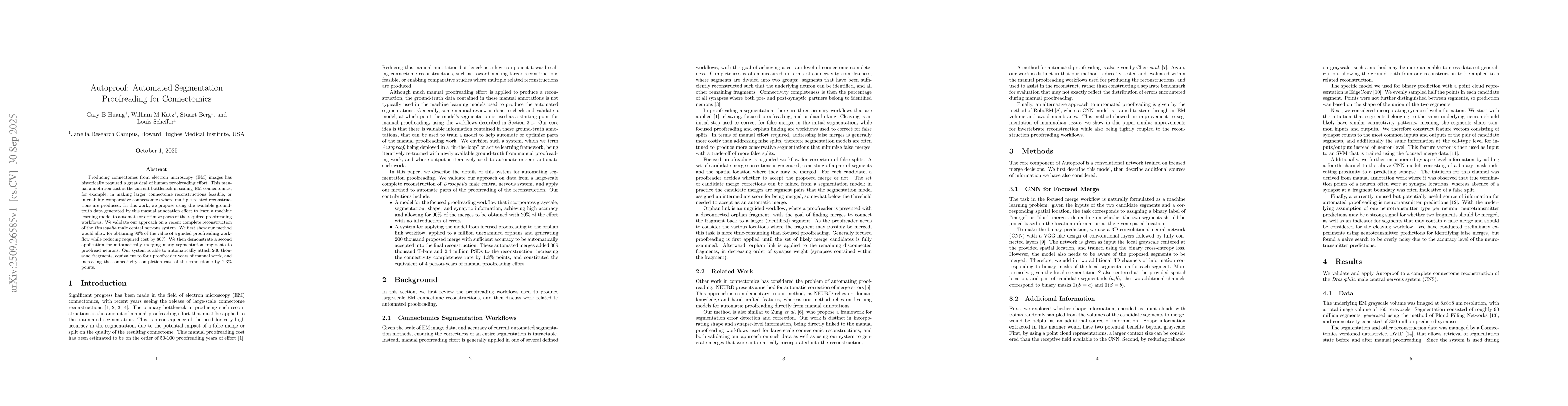This research addresses the critical bottleneck in connectomics by reducing manual proofreading effort, enabling faster and more scalable EM connectome reconstruction. It has potential to significantly reduce time and cost in large-scale connectomics projects.