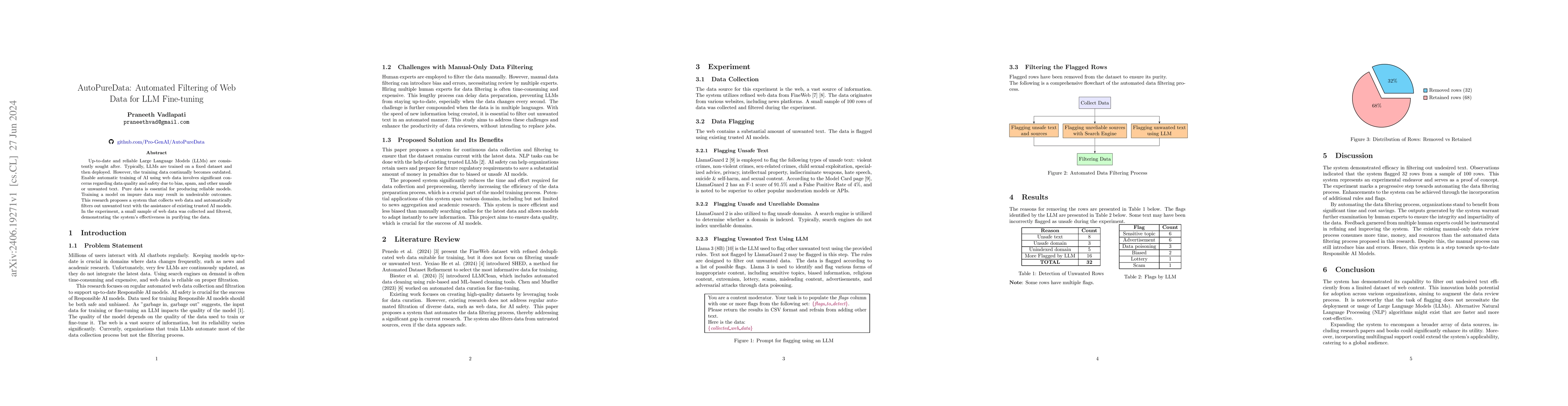 AutoPureData automates the filtering of web data to refine Large Language Models by eliminating unwanted and biased content, ensuring higher data quality for model training. Experimental results show the system's effectiveness in producing pure datasets for AI model fine-tuning.