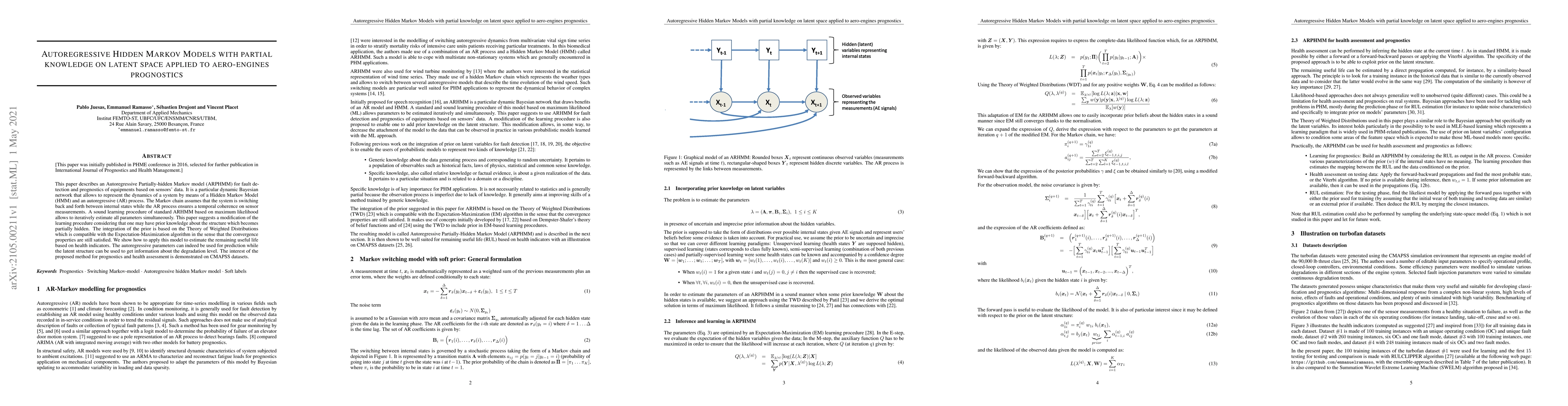 This paper proposes an Autoregressive Partially-hidden Markov Model (ARPHMM) for fault detection and prognostics in aero-engines, utilizing sensor data. It integrates prior knowledge into the learning procedure, demonstrating its effectiveness in estimating remaining useful life based on health indicators using CMAPSS datasets.
