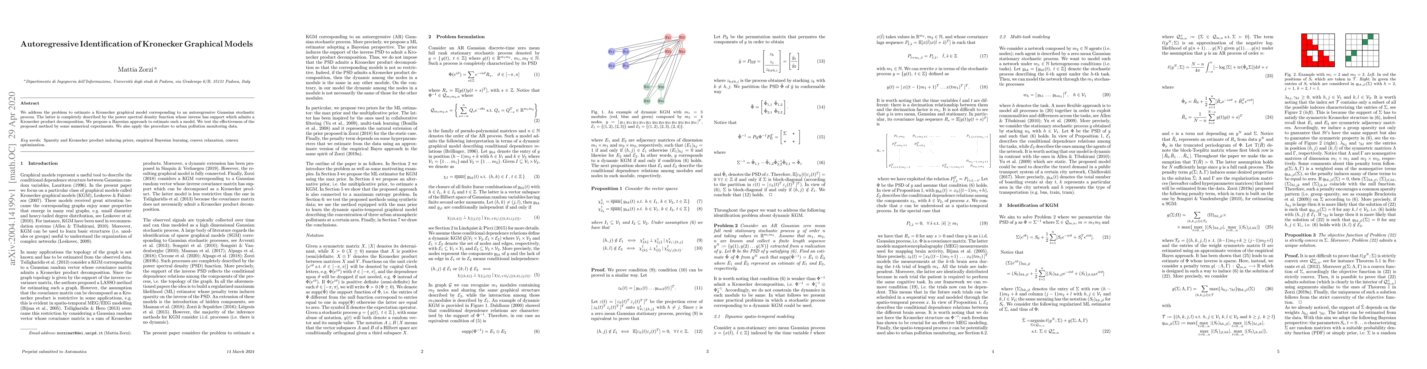 We address the problem to estimate a Kronecker graphical model corresponding to an autoregressive Gaussian stochastic process. The latter is completely described by the power spectral density function whose inverse has support which admits a Kronecker product decomposition. We propose a Bayesian approach to estimate such a model. We test the effectiveness of the proposed method by some numerical experiments. We also apply the procedure to urban pollution monitoring data.