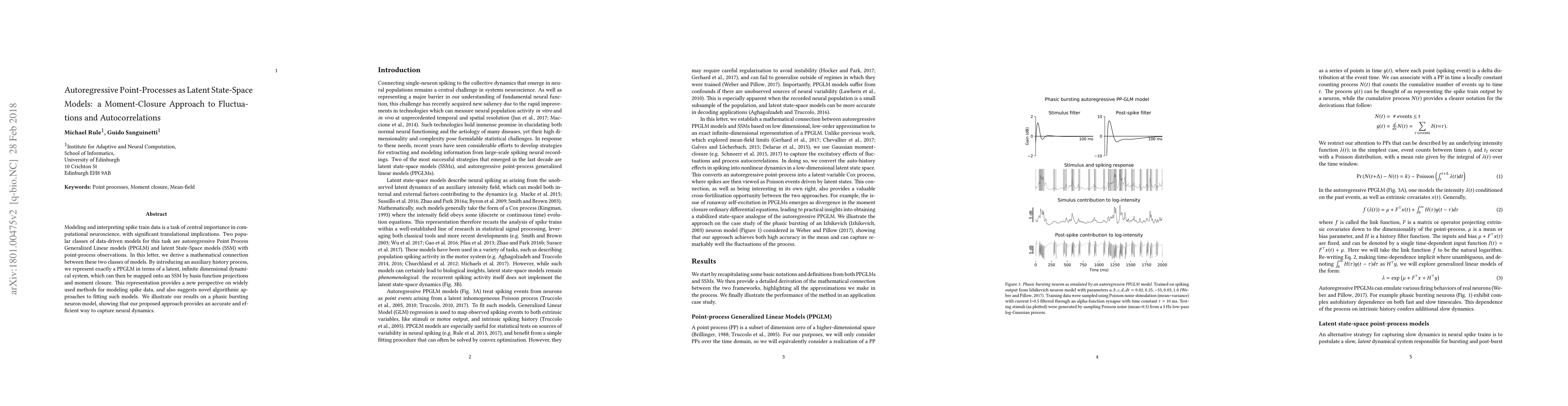 This paper establishes a mathematical link between autoregressive Point Process Generalized Linear Models (PPGLM) and latent State-Space Models (SSM) by introducing an auxiliary history process. This new perspective enables efficient modeling of spike train data and suggests novel algorithmic methods for fitting such models.