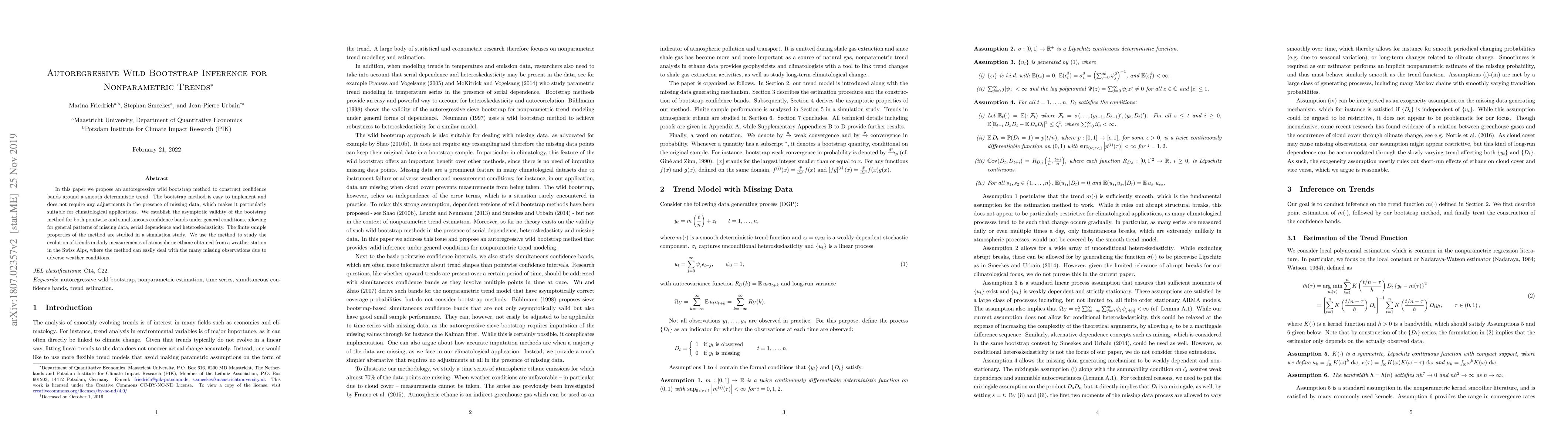 A new method for constructing confidence bands around trends in data is proposed, which can handle missing data, serial dependence, and heteroskedasticity. The method has been successfully applied to study atmospheric ethane trends with many missing observations.