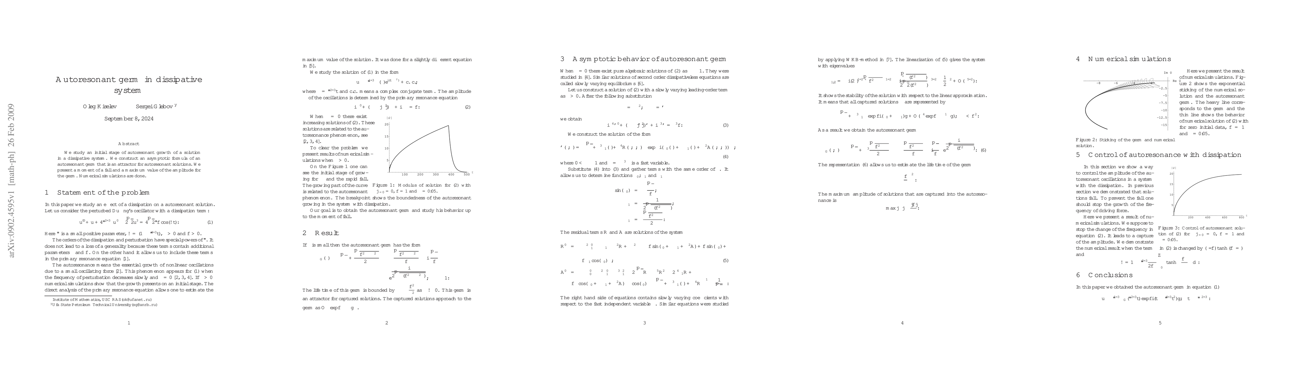 Researchers studied an initial stage of autoresonant growth in a dissipative system, creating an asymptotic formula for the attractor that shows its maximum value and amplitude.