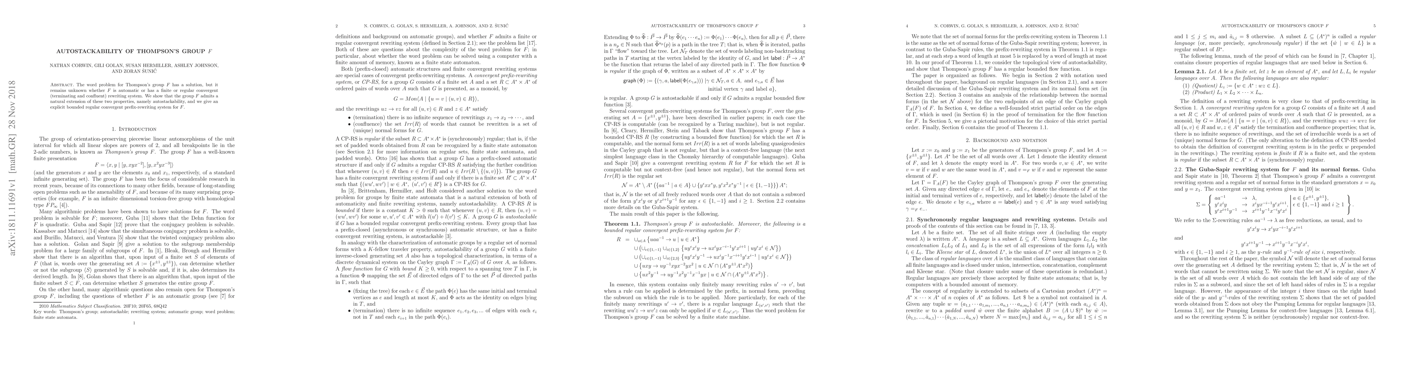 The paper demonstrates that Thompson's group $F$ is autostackable and provides an explicit bounded regular convergent prefix-rewriting system for it, extending the known solvability of its word problem. This work contributes to understanding the group's structural properties beyond automaticity.