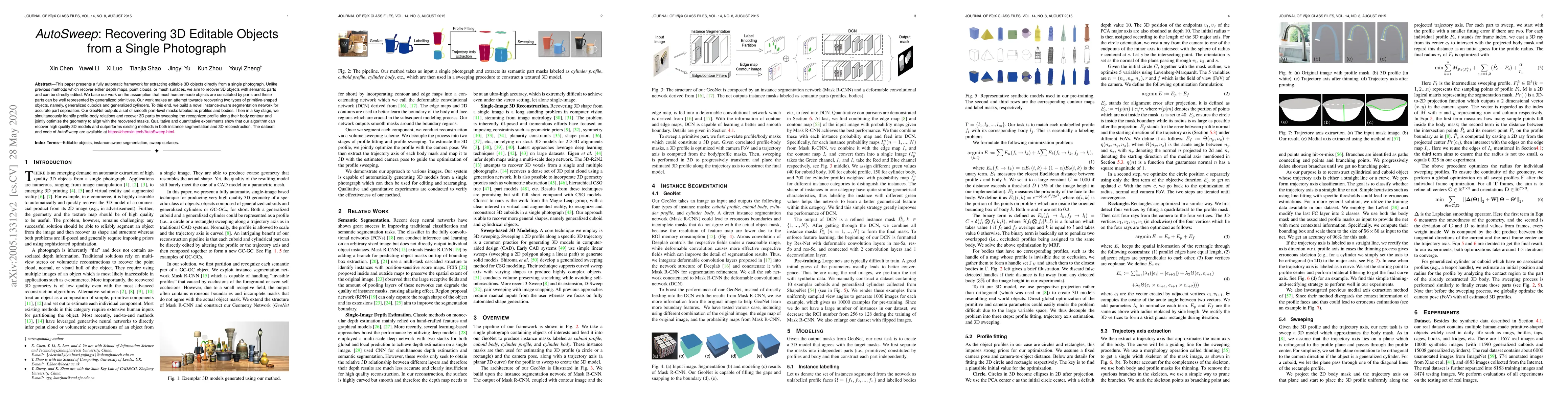 This paper introduces AutoSweep, a system that can automatically extract 3D editable objects from a single photograph, outperforming existing methods in both instance segmentation and 3D reconstruction.