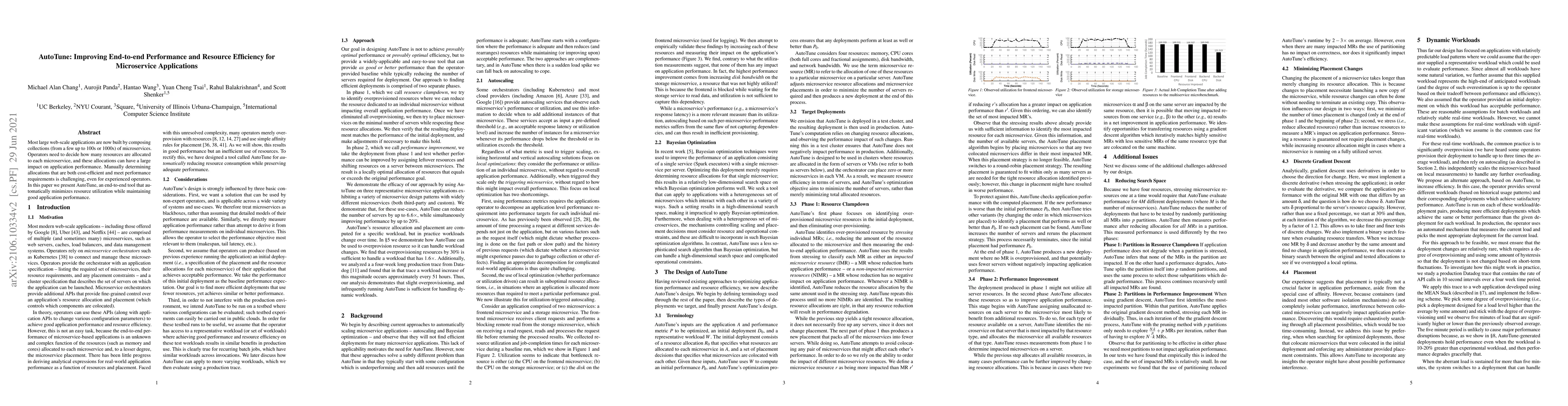 This paper introduces AutoTune, an end-to-end tool that automatically optimizes resource allocation for microservice applications to balance performance and cost efficiency. It aims to simplify the challenging task of manually allocating resources to meet application requirements.