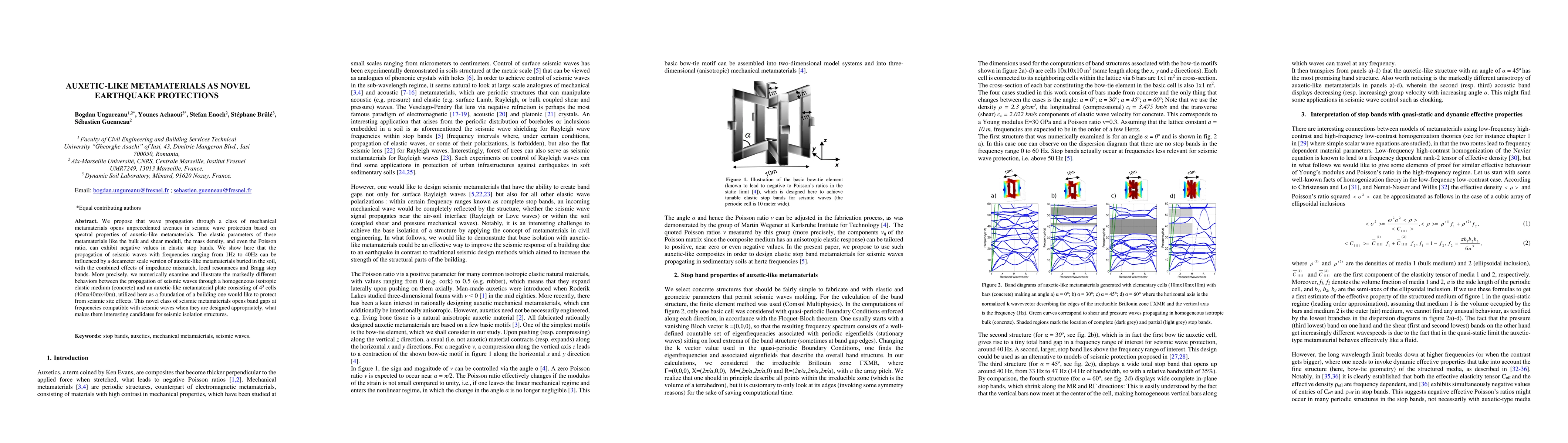 The paper presents a new class of seismic metamaterials based on auxetic-like structures, demonstrating their ability to create band gaps and suppress seismic wave propagation through impedance mismatch, local resonances, and Bragg stop bands.