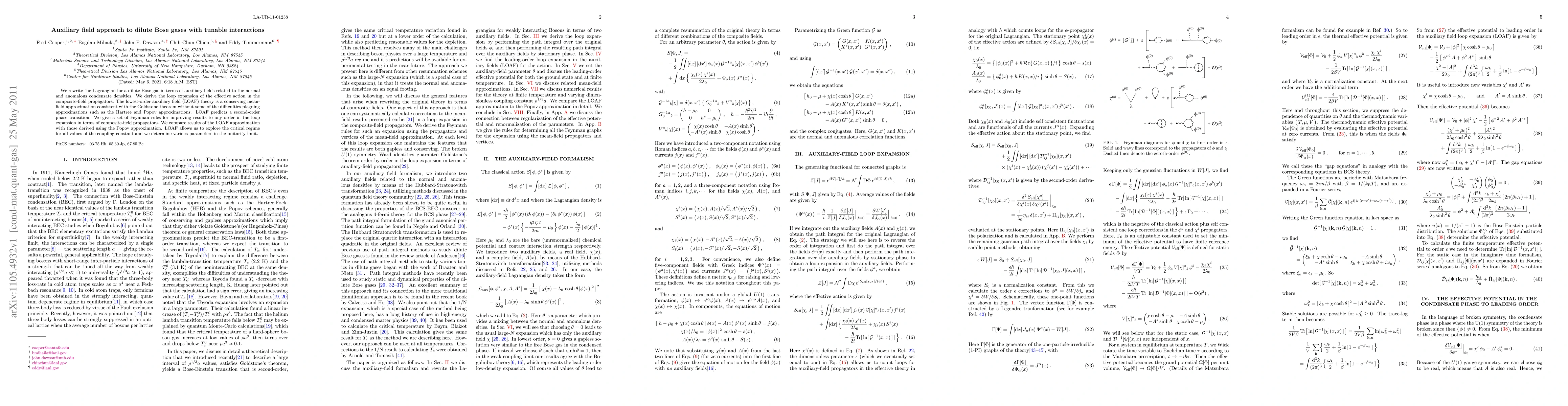 We rewrite the Lagrangian for a dilute Bose gas in terms of auxiliary fields related to the normal and anomalous condensate densities. We derive the loop expansion of the effective action in the composite-field propagators. The lowest-order auxiliary field (LOAF) theory is a conserving mean-field approximation consistent with the Goldstone theorem without some of the difficulties plaguing approximations such as the Hartree and Popov approximations. LOAF predicts a second-order phase transition. We give a set of Feynman rules for improving results to any order in the loop expansion in terms of composite-field propagators. We compare results of the LOAF approximation with those derived using the Popov approximation. LOAF allows us to explore the critical regime for all values of the coupling constant and we determine various parameters in the unitarity limit.
