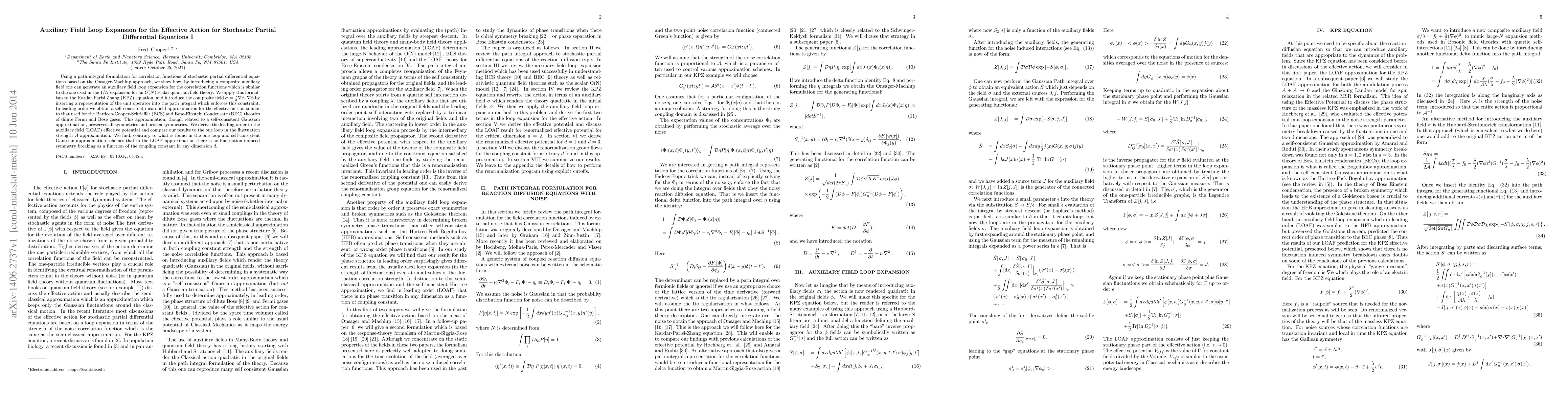 Researchers develop an auxiliary field loop expansion method for stochastic partial differential equations, which preserves symmetries and broken symmetries in the effective action, unlike previous approximations.