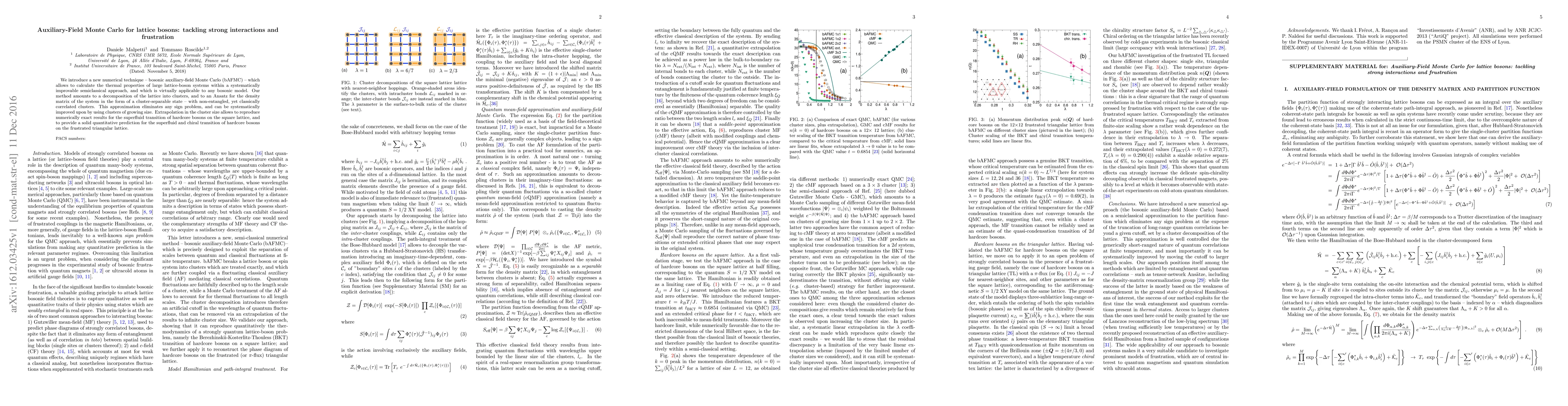 We introduce a new numerical technique -- bosonic auxiliary-field Monte Carlo (bAFMC) -- which allows to calculate the thermal properties of large lattice-boson systems within a systematically improvable semiclassical approach, and which is virtually applicable to any bosonic model. Our method amounts to a decomposition of the lattice into clusters, and to an Ansatz for the density matrix of the system in the form of a cluster-separable state -- with non-entangled, yet classically correlated clusters. This approximation eliminates any sign problem, and can be systematically improved upon by using clusters of growing size. Extrapolation in the cluster size allows to reproduce numerically exact results for the superfluid transition of hardcore bosons on the square lattice, and to provide a solid quantitative prediction for the superfluid and chiral transition of hardcore bosons on the frustrated triangular lattice.