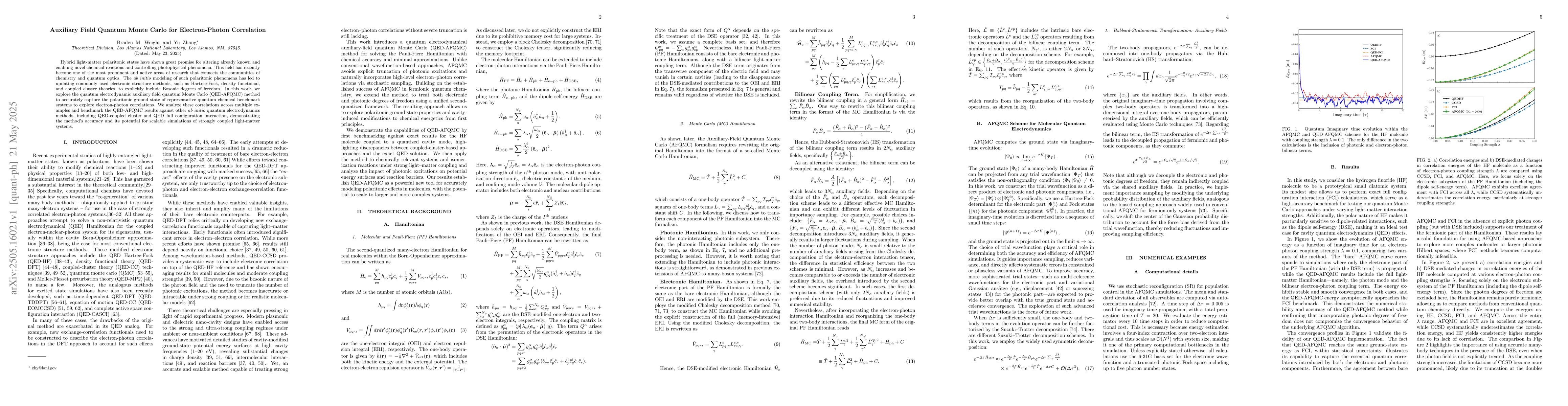 The development and application of the QED-AFQMC method for accurately modeling electron-photon correlations in polaritonic systems.