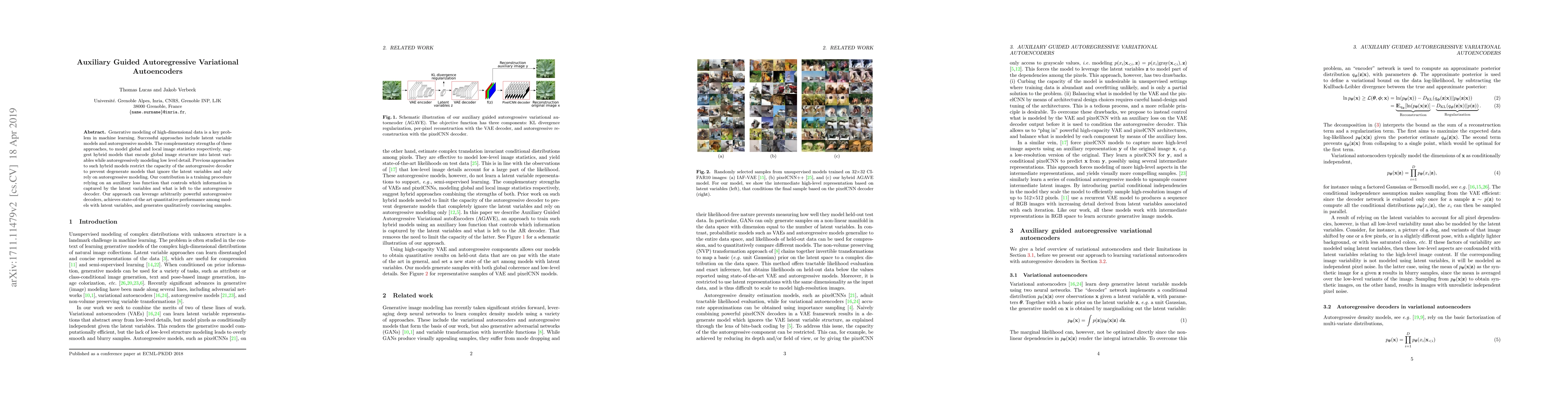 Generative modeling of high-dimensional data is a key problem in machine learning. Successful approaches include latent variable models and autoregressive models. The complementary strengths of these approaches, to model global and local image statistics respectively, suggest hybrid models that encode global image structure into latent variables while autoregressively modeling low level detail. Previous approaches to such hybrid models restrict the capacity of the autoregressive decoder to prevent degenerate models that ignore the latent variables and only rely on autoregressive modeling. Our contribution is a training procedure relying on an auxiliary loss function that controls which information is captured by the latent variables and what is left to the autoregressive decoder. Our approach can leverage arbitrarily powerful autoregressive decoders, achieves state-of-the art quantitative performance among models with latent variables, and generates qualitatively convincing samples.