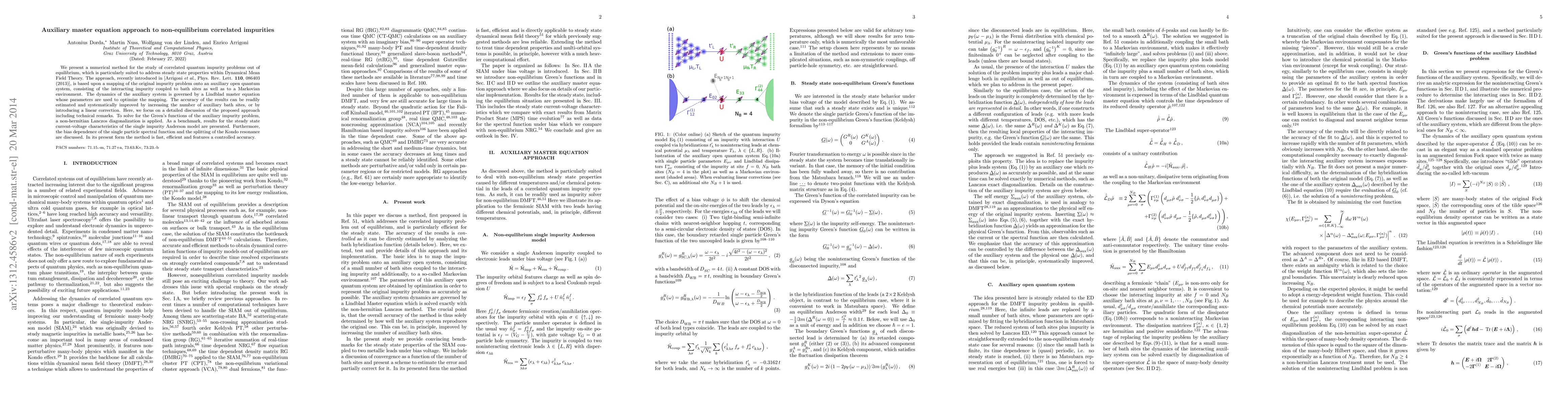 This paper presents a numerical method for studying non-equilibrium correlated quantum impurity systems using an auxiliary master equation approach within Dynamical Mean Field Theory. The method maps the impurity problem onto an auxiliary open quantum system, optimizing the mapping through a Lindblad master equation, and employs non-hermitian Lanczos diagonalization to solve the auxiliary impurity problem's Green's functions.