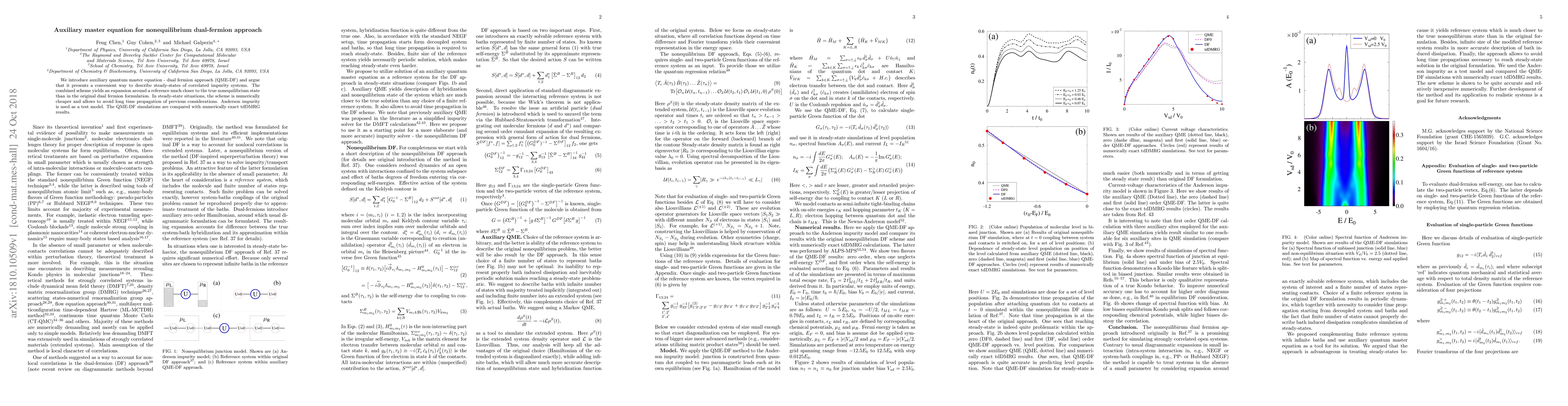 We introduce auxiliary quantum master equation - dual fermion approach (QME-DF) and argue that it presents a convenient way to describe steady-states of correlated impurity systems. The combined scheme yields an expansion around a reference much closer to the true nonequilibrium state than in the original dual fermion formulation. In steady-state situations, the scheme is numerically cheaper and allows to avoid long time propagation of previous considerations. Anderson impurity is used as a test model. The QME-DF simulations are compared with numerically exact tdDMRG results.