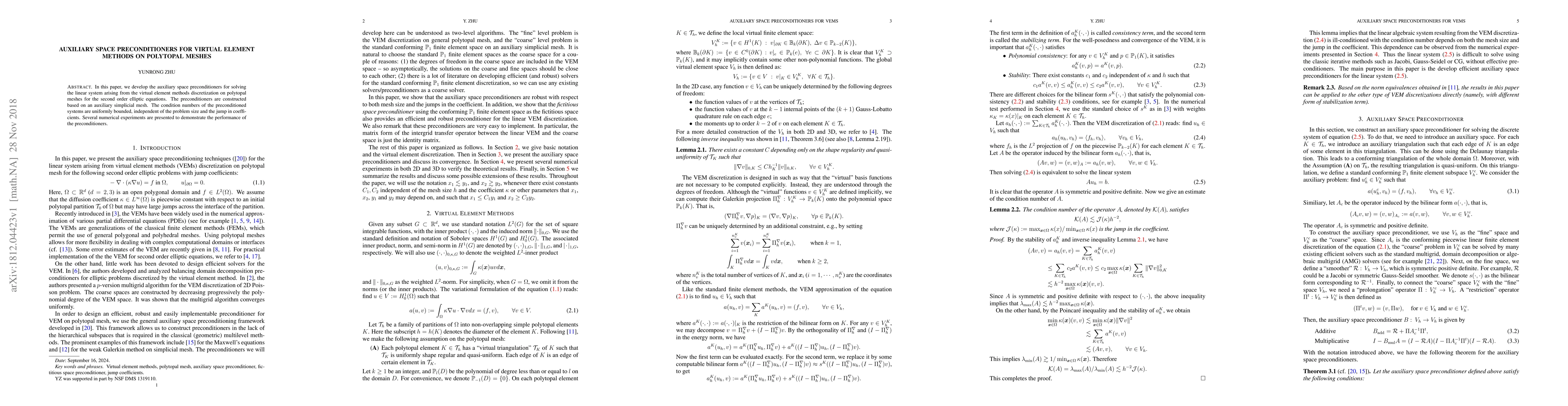 This paper introduces auxiliary space preconditioners for virtual element methods on polytopal meshes, constructed using an auxiliary simplicial mesh to solve linear systems from second-order elliptic equations. The preconditioners ensure uniformly bounded condition numbers, independent of problem size and coefficient variations, as demonstrated by numerical experiments.
