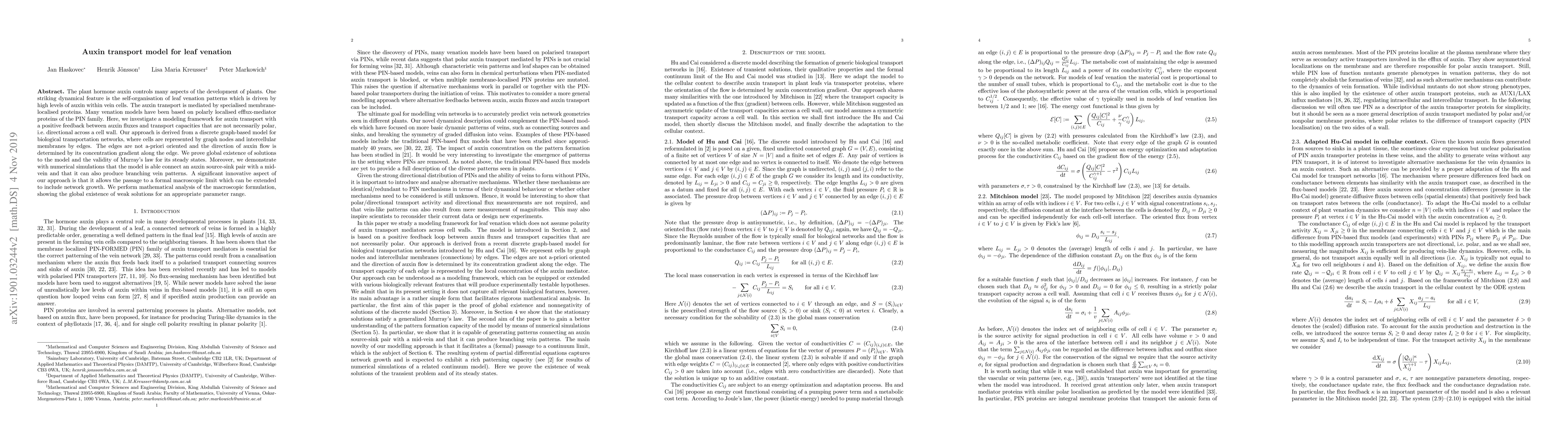 Researchers developed a new model to study leaf venation patterns in plants, incorporating a positive feedback loop between auxin transport and cell capacity, which can produce branching vein patterns.