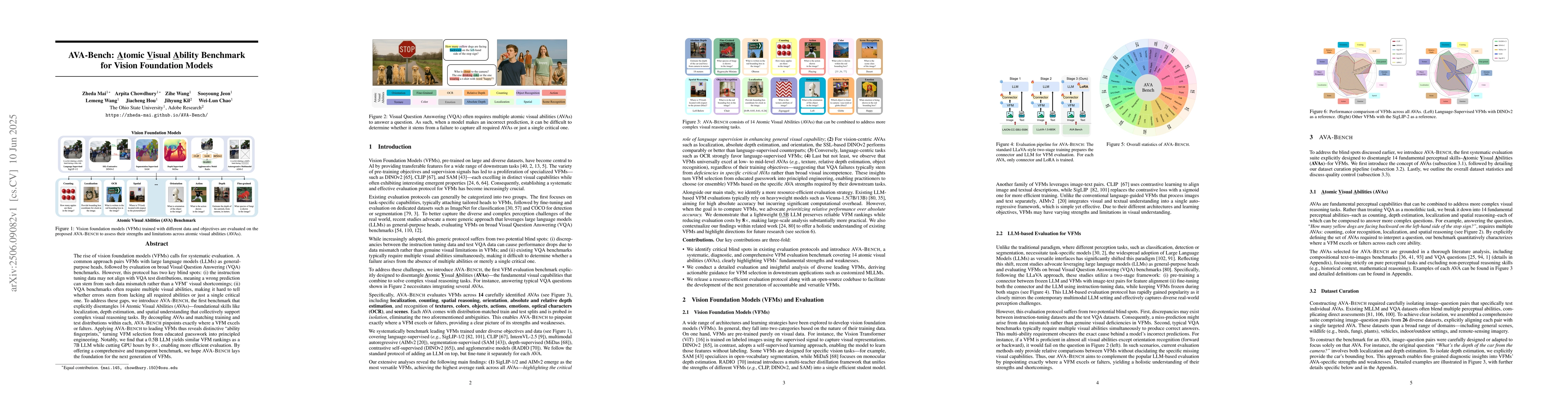 The AVA-Bench provides a new benchmark to evaluate vision foundation models (VFM) by decoupling 14 atomic visual abilities, allowing for precise assessment of VFM strengths and weaknesses.