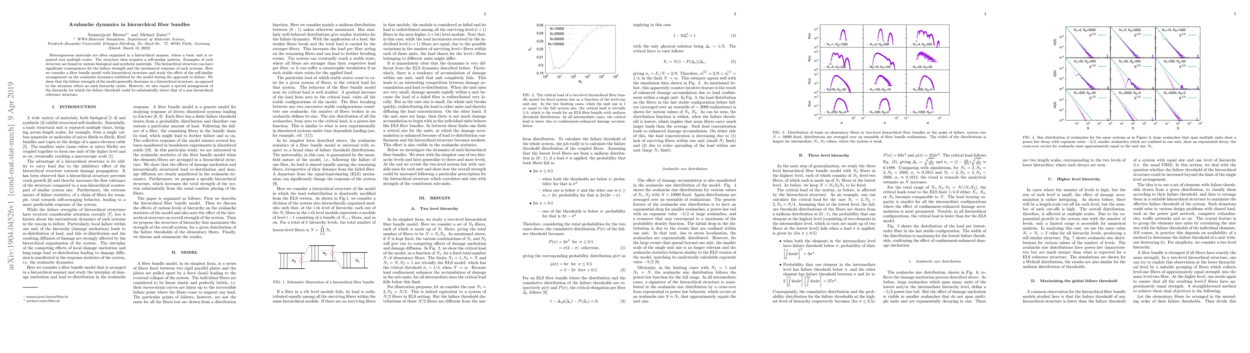 This paper investigates the avalanche dynamics in hierarchical fiber bundles, finding that while a hierarchical structure generally lowers the failure strength, a specific hierarchical arrangement can significantly increase the failure threshold compared to non-hierarchical structures.
