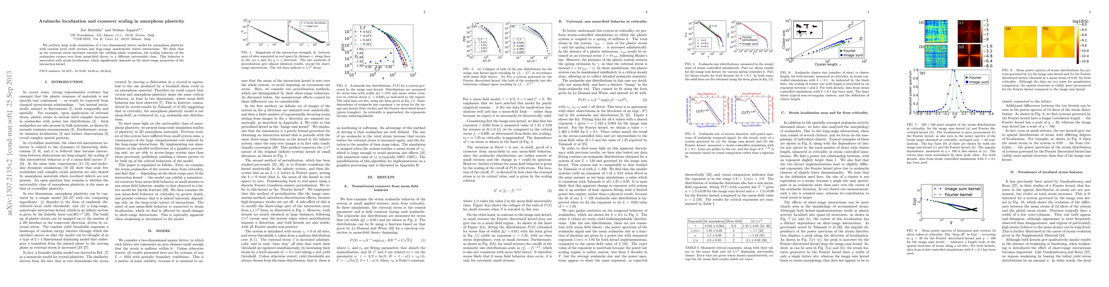 This paper investigates large-scale simulations of a two-dimensional lattice model for amorphous plasticity, revealing that as stress approaches the yielding phase transition, avalanche scaling behavior shifts from mean-field theory to a different universality class linked to strain localization influenced by short-range interaction properties.