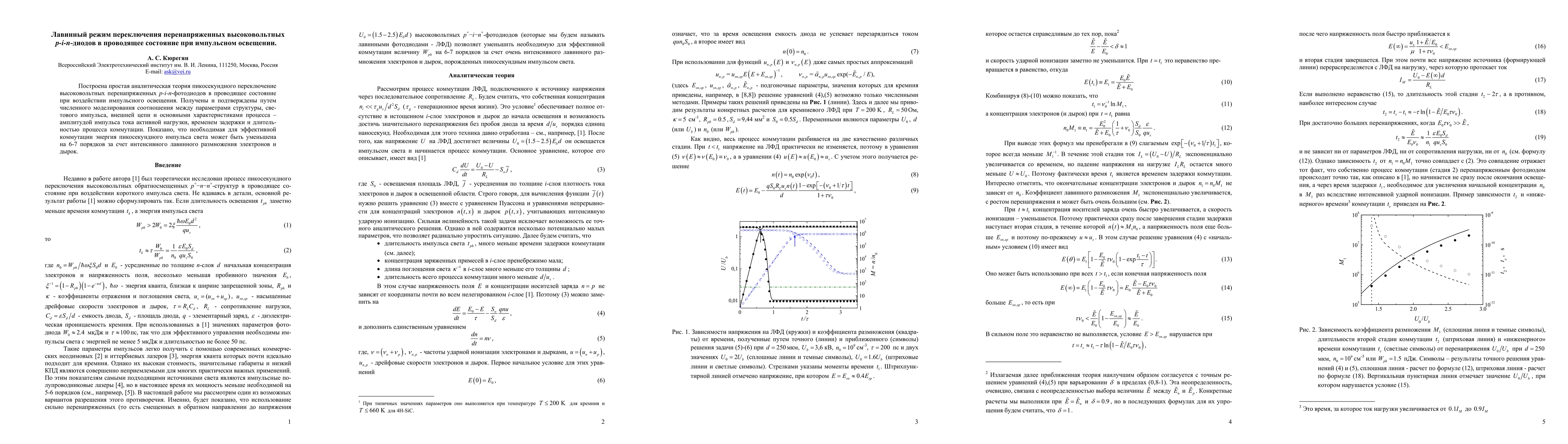 This paper presents an analytical theory explaining the picosecond switching of high-voltage p+-i-n+-structures into a conductive state via pulsed lighting, revealing a significant reduction in required light pulse energy due to avalanche multiplication. The model correlates structure, light pulse, and circuit parameters with switching characteristics, validated through numerical simulations.