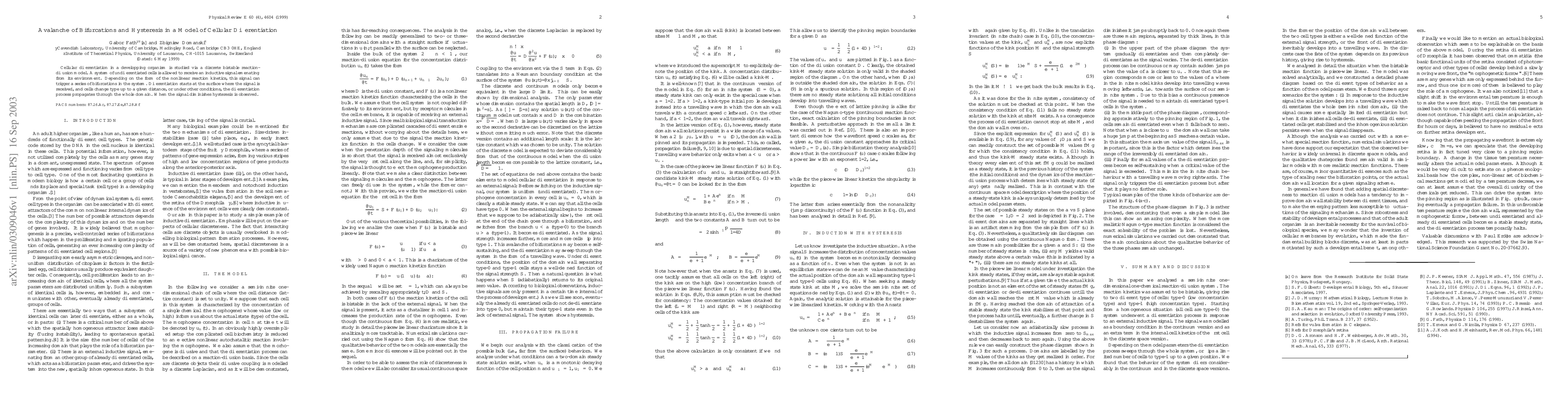 A discrete bistable reaction-diffusion model shows how environmental signals can trigger bifurcations in cellular differentiation, leading to propagation of differentiation through tissues, and hysteresis when the signal diminishes.