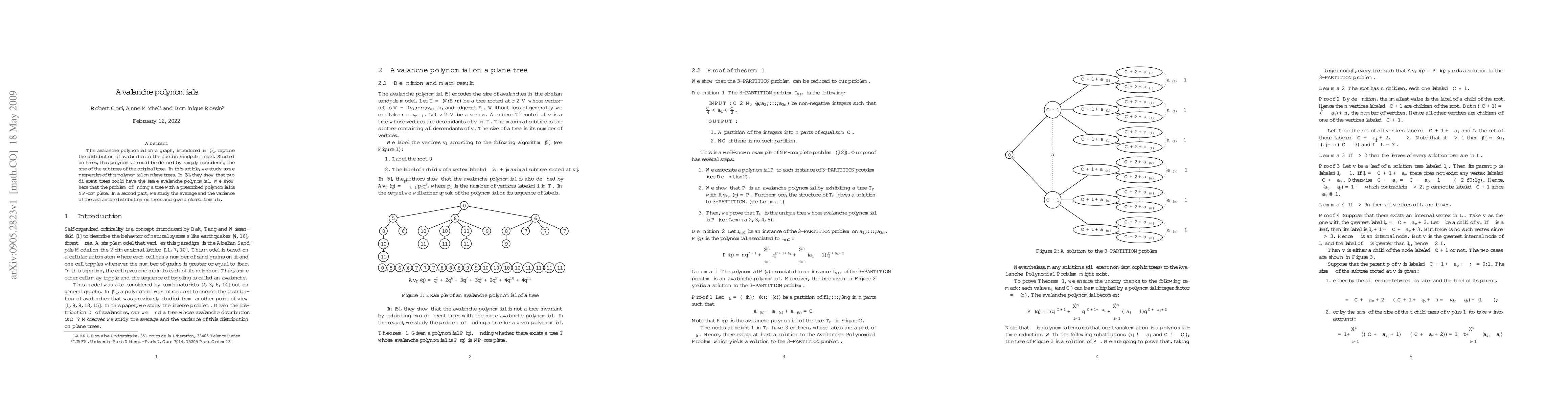 The avalanche polynomial on a graph captures the distribution of avalanches in the abelian sandpile model. Studied on trees, this polynomial could be defined by simply considering the size of the subtrees of the original tree. In this article, we study some properties of this polynomial on plane trees. Previously it has been proved that two different trees could have the same avalanche polynomial. We show here that the problem of finding a tree with a prescribed polynomial is NP-complete. In a second part, we study the average and the variance of the avalanche distribution on trees and give a closed formula.